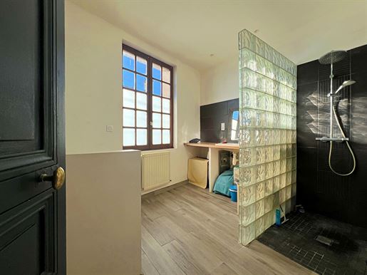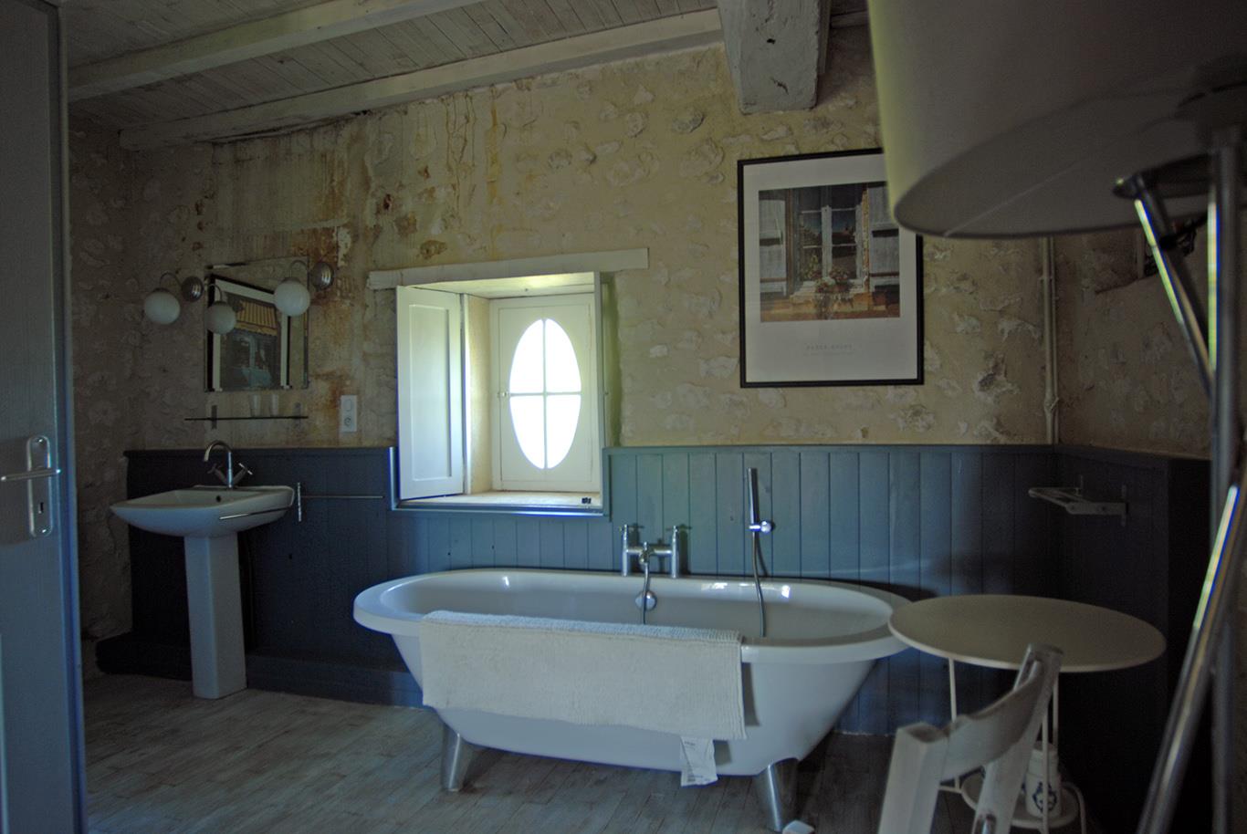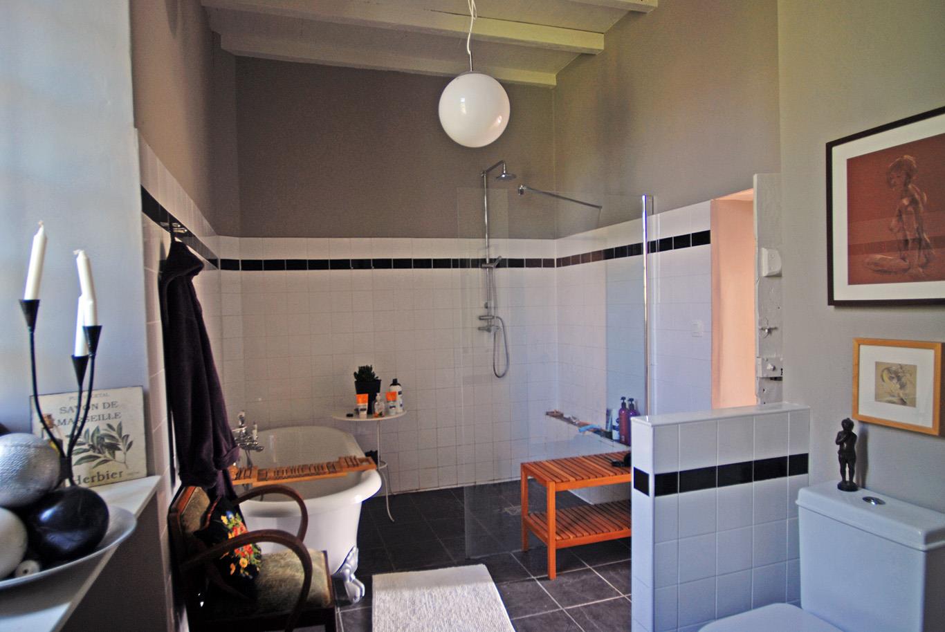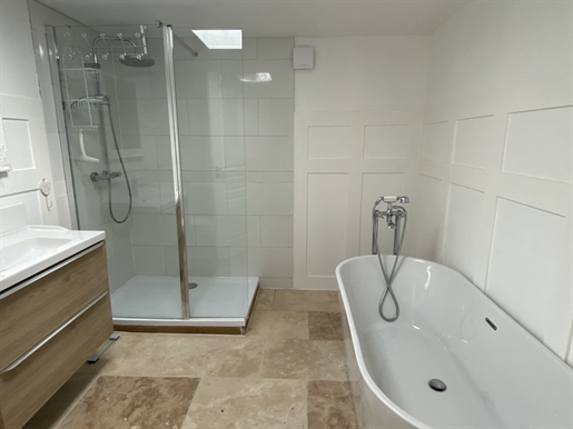 • belle salle de bain de 2,5 x 4,5m en-suite avec baignoire, douche, 2 lavabos et w.c.