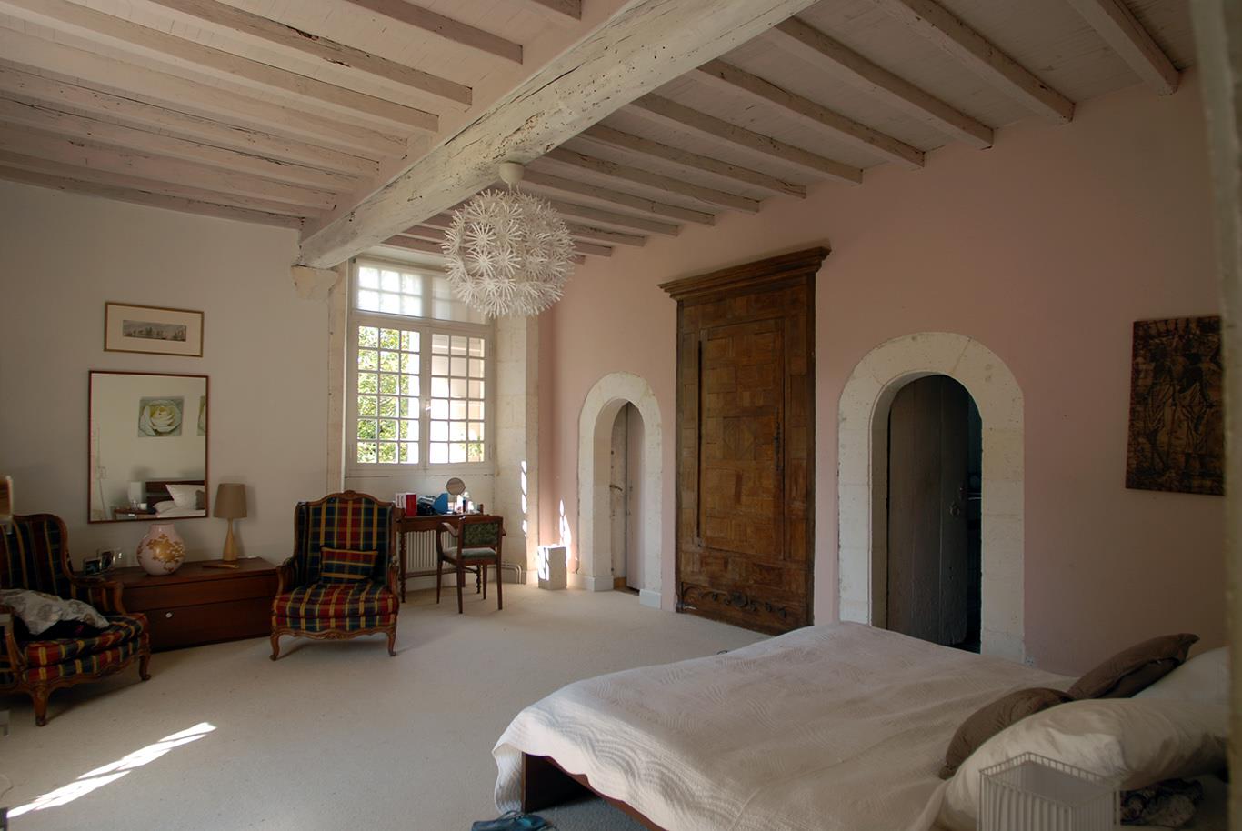 • chambre de Maître de 4,8 x 6,1m avec du sisal au sol et placard ancien encastré