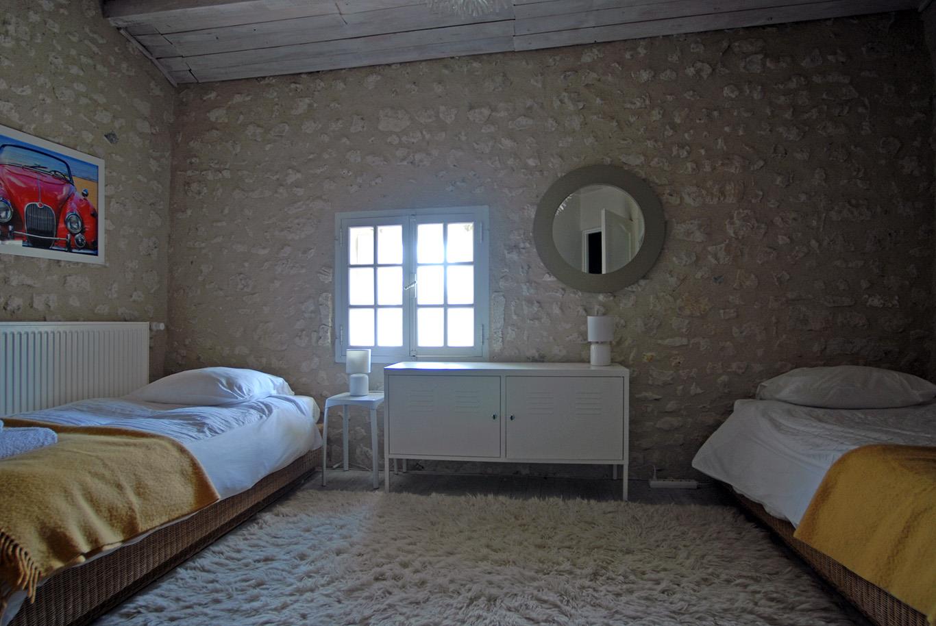 • chambre d’amis de 3 x 6,2m avec banquette encastrée et plancher au sol