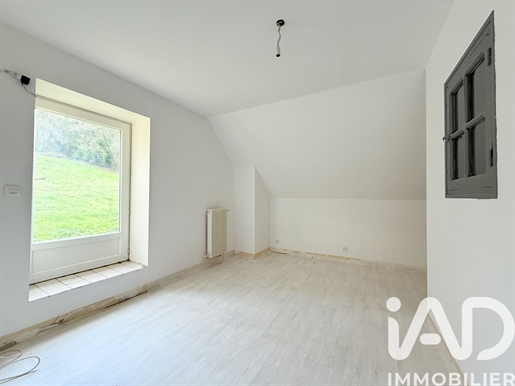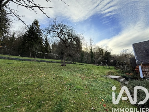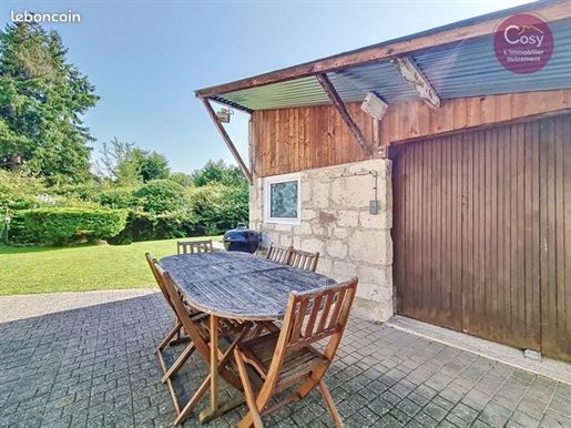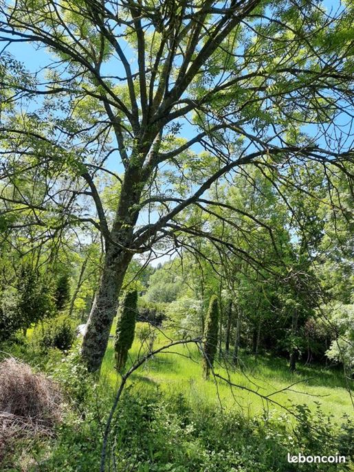 Le terrain de 2 030 m2 se déploie en plusieurs ambiances : une cour à l’avant, une grande terrasse à l’arrière — à aménager, pourquoi pas, en solarium — et une vue dégagée sur le village, avec la forêt en toile de fond. Une sensation de calme et de déconnexion au quotidien.