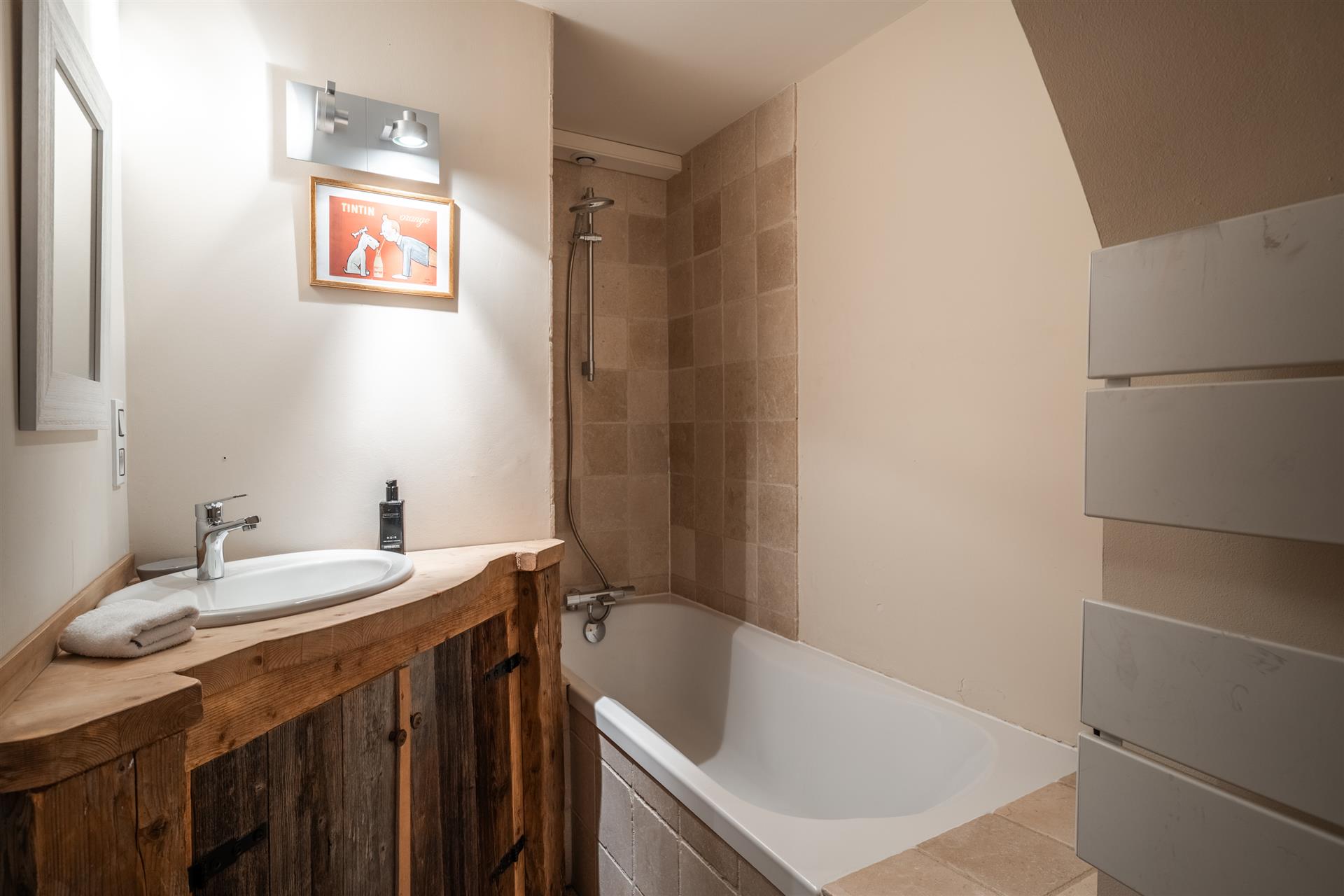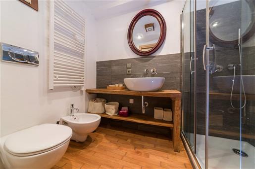 À moitié italien, le propriétaire a voulu insuffler à son chalet une âme méditerranéenne. Les tuiles du toit, les revêtements de sol, et les escaliers sculptés à la main ont été choisis en Italie. La décoration intérieure, signée par un designer italien, marie raffinement, chaleur et sobriété contemporaine.