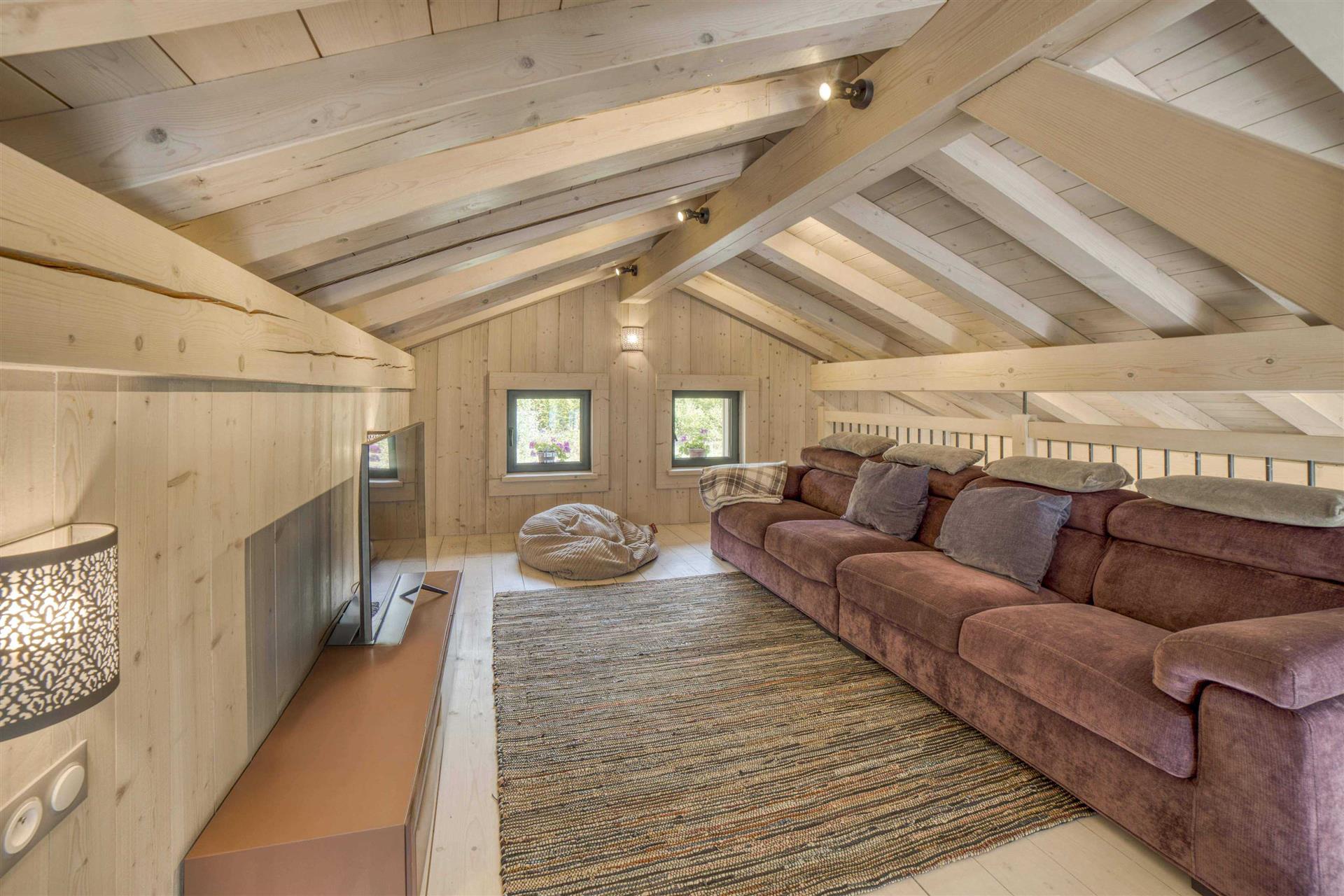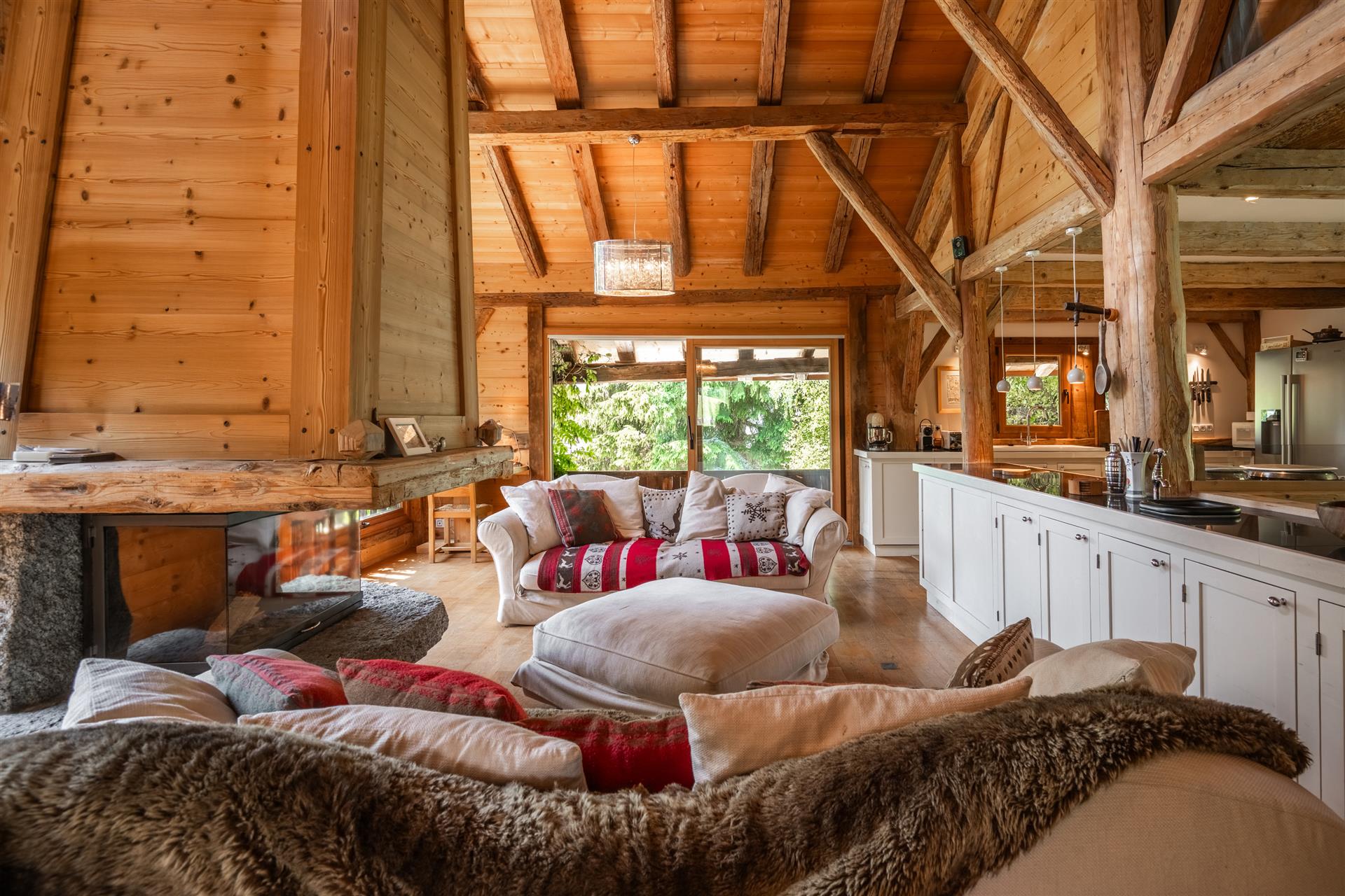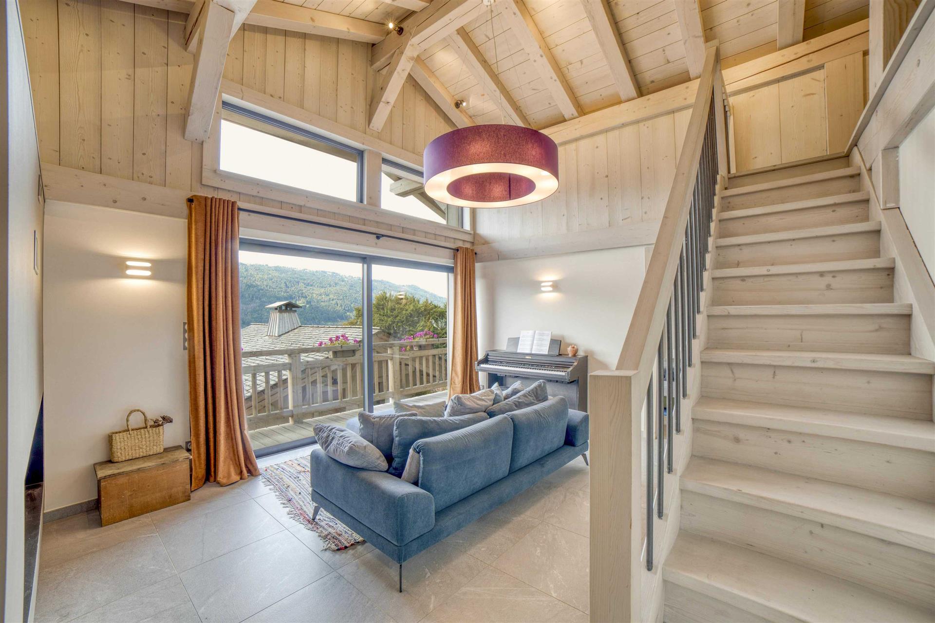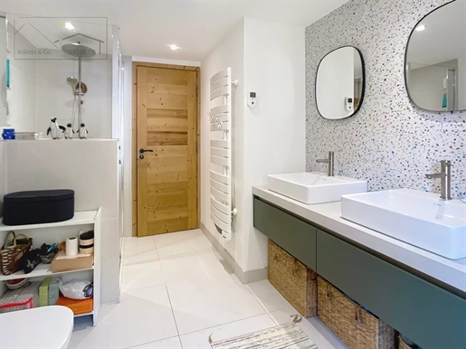 Le chalet principal offre 340 m2 d’espaces lumineux et chaleureux. Une maison secondaire attenante mais indépendante permet d’accueillir famille, amis ou locataires saisonniers (revenus sur demande).
