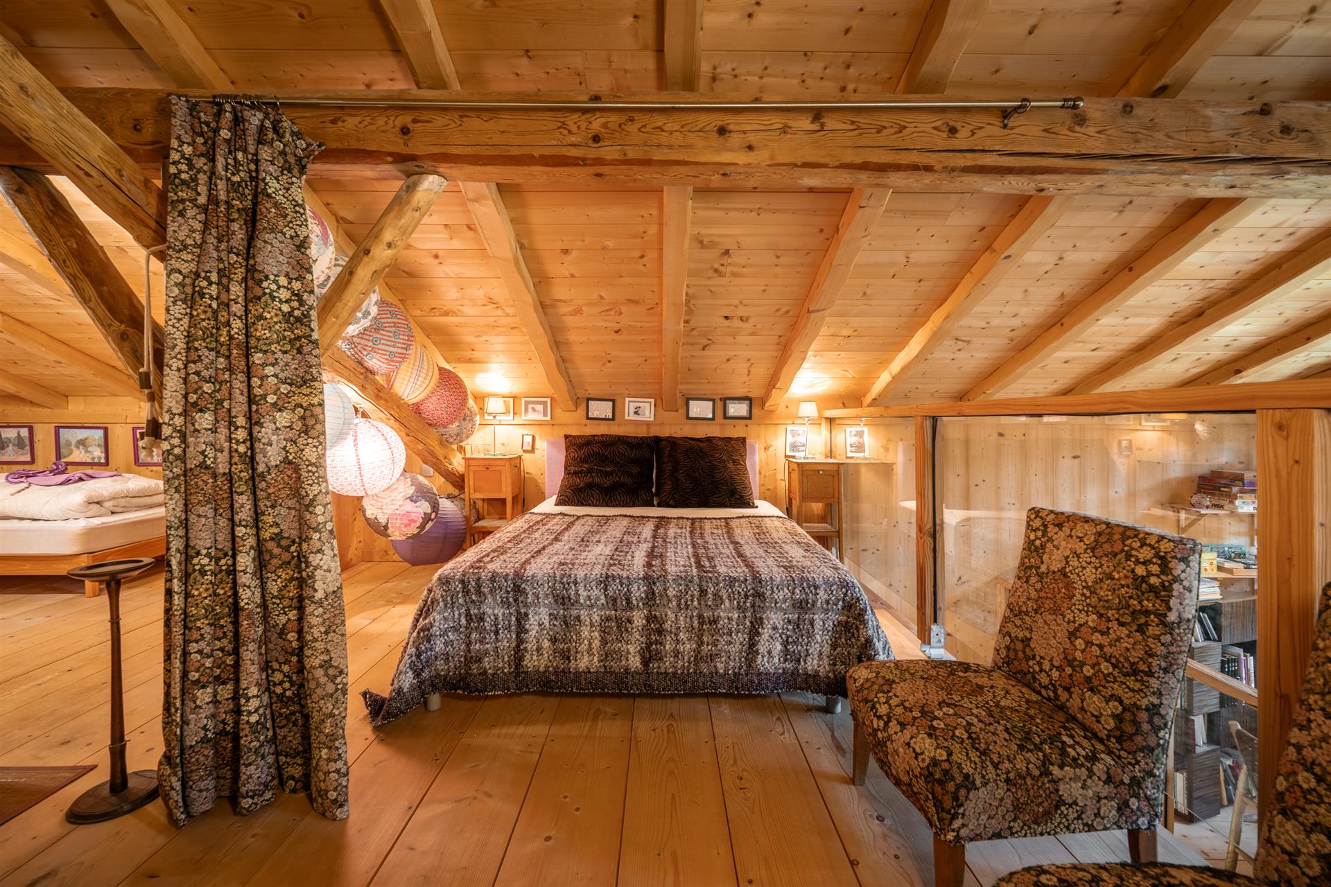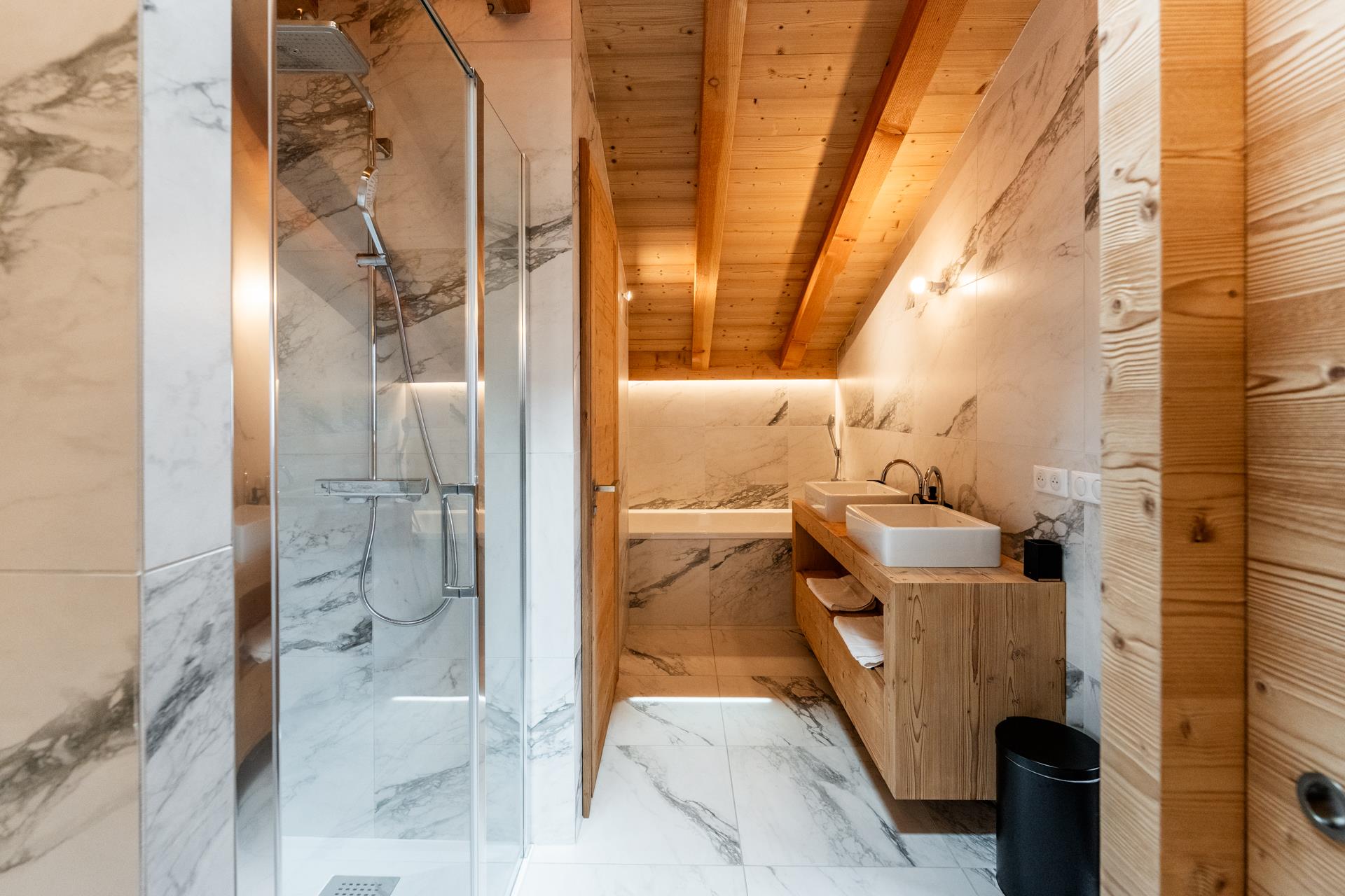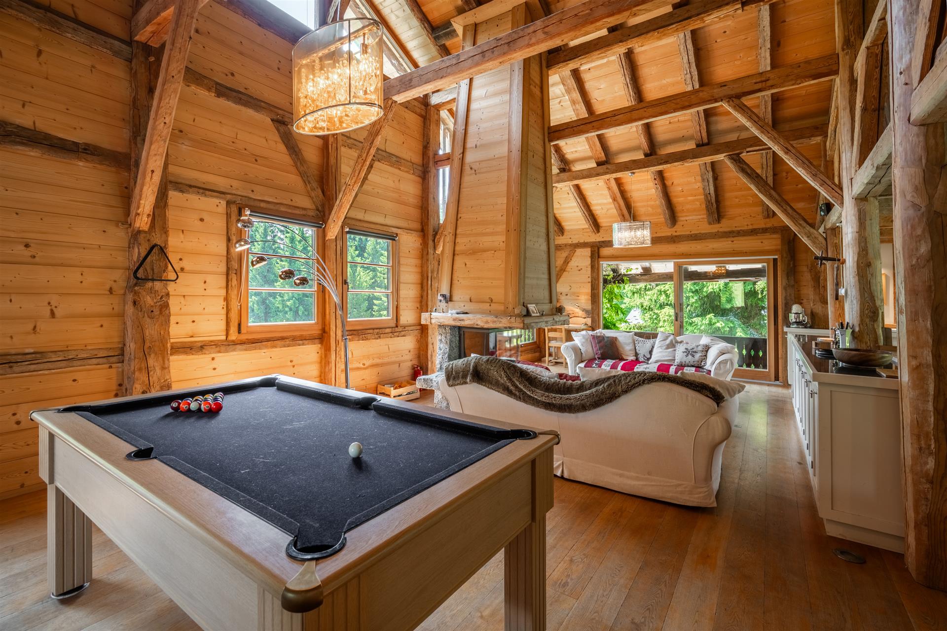Le chalet principal offre 340 m2 d’espaces lumineux et chaleureux. Une maison secondaire attenante mais indépendante permet d’accueillir famille, amis ou locataires saisonniers (revenus sur demande).