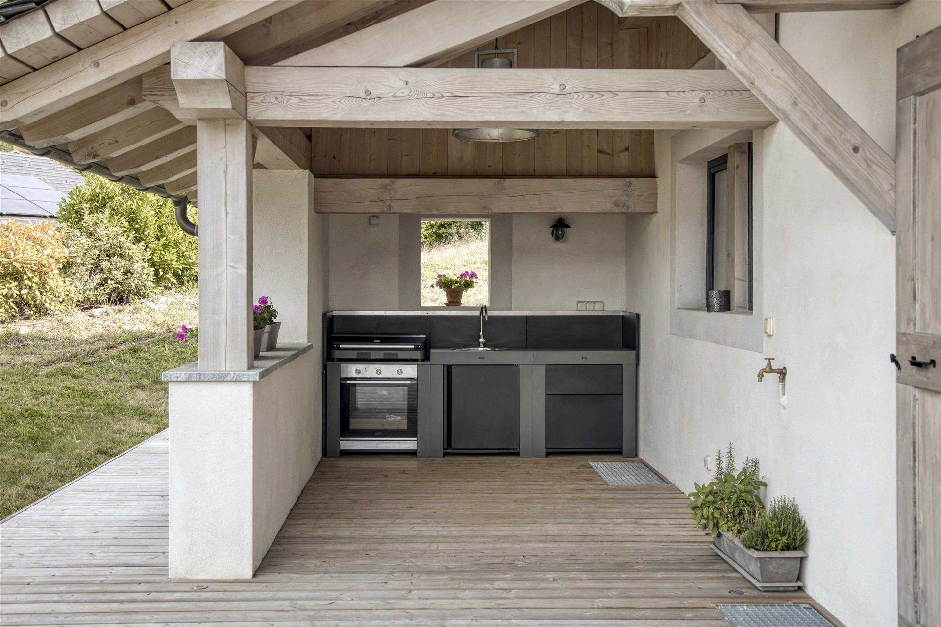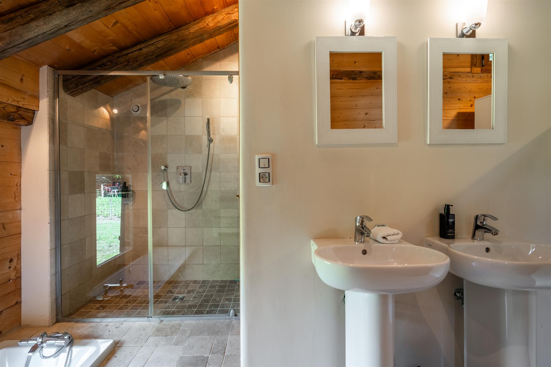 Entre les deux chalets, un vaste espace brut de 100 m2 laisse place à toutes les envies :