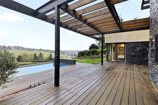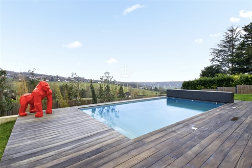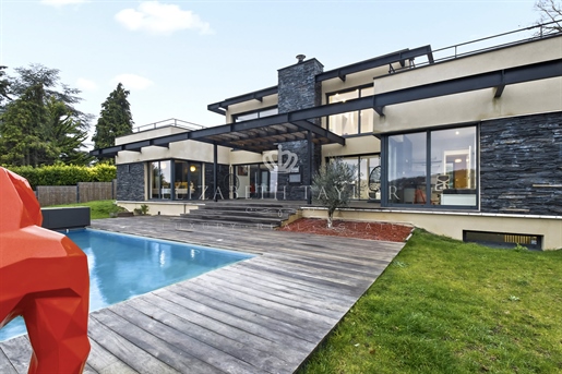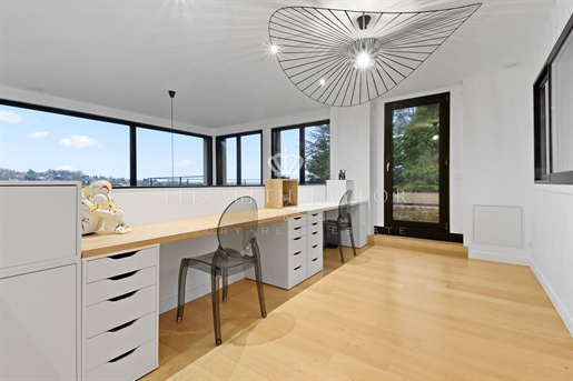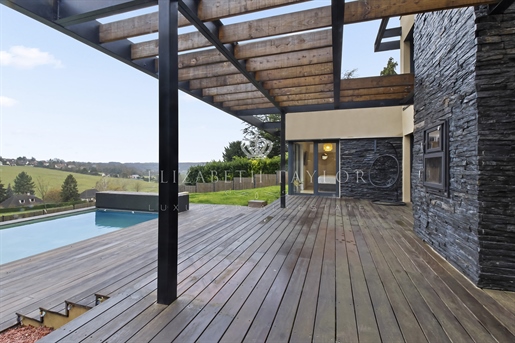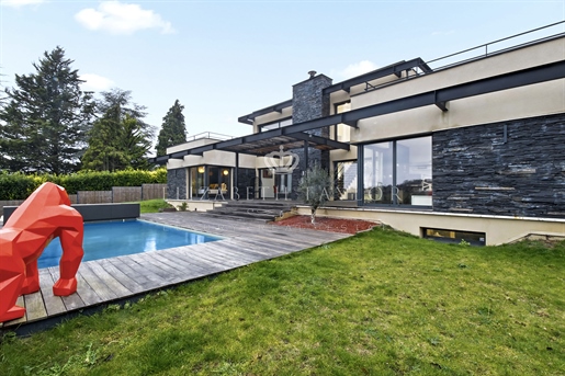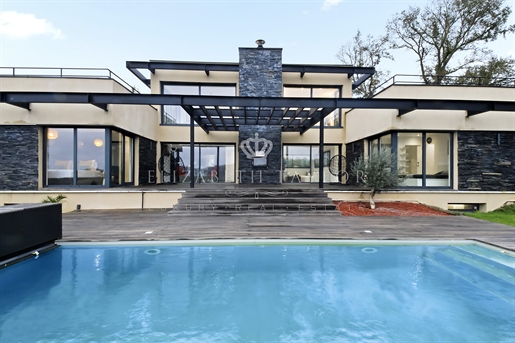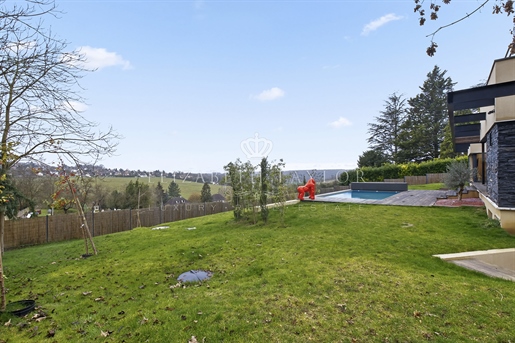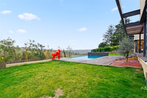 Au cœur d’un écrin de verdure préservé, dans un environnement verdoyant, se dévoile cette somptueuse villa contemporaine de 310 m2, construite en 2023 sur un terrain paysager de 1 825 m2. Véritable réalisation d’architecte, elle allie lignes épurées, matériaux nobles et volumes harmonieux. La lumière, omniprésente grâce aux larges façades vitrées, magnifie chaque instant de vie et révèle un panorama saisissant sur la vallée.