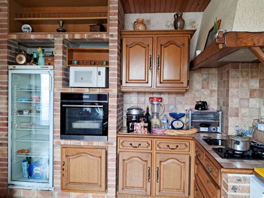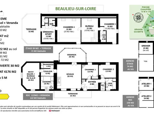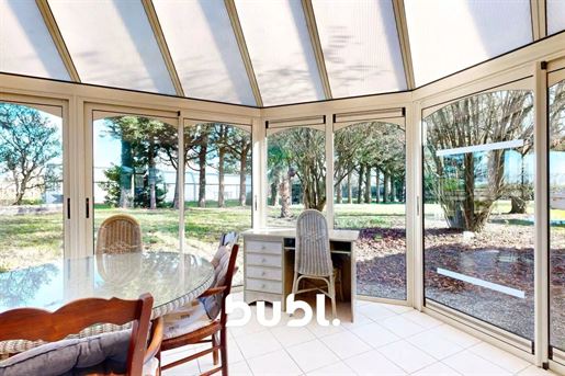 La maison principale développe 222 m2 au sol, dont 193 m2 habitables, complétés par une véranda de 20 m2 ouverte sur le jardin. La distribution permet une vie de plain-pied, confortable et fonctionnelle, avec de beaux volumes et plusieurs espaces nuit, parfaitement adaptés à une grande famille ou à l’accueil d’amis.