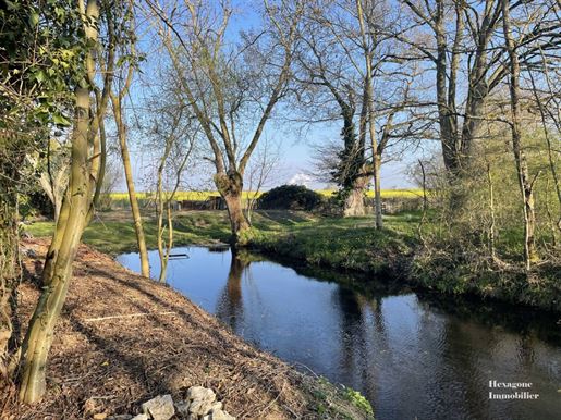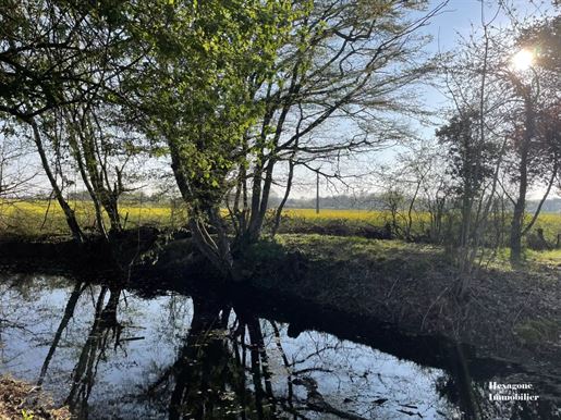 La propriété est implantée sur un terrain plat de 4 176 m2, arboré et planté d’arbres fruitiers. Elle dispose d’un puits, d’un ensemble entièrement clos et sans vis-à-vis, dans un petit hameau paisible, avec champs et forêt à proximité immédiate.
