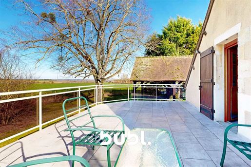 À l’étage, une grande terrasse de 32 m2 prolonge les espaces de vie et offre une vue dégagée sur la campagne et les champs, sans aucun vis-à-vis, véritable belvédère sur la nature environnante.