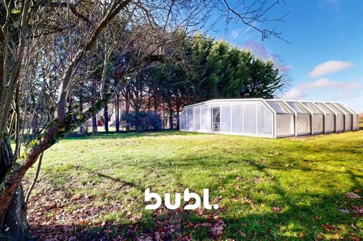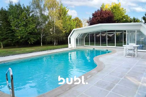 La piscine 10 x 5 m, chauffée, est couverte et découvrable aux beaux jours, permettant de profiter pleinement des extérieurs sur une longue période de l’année.