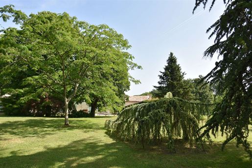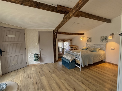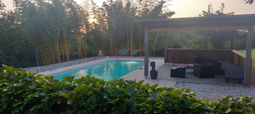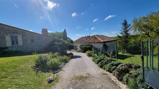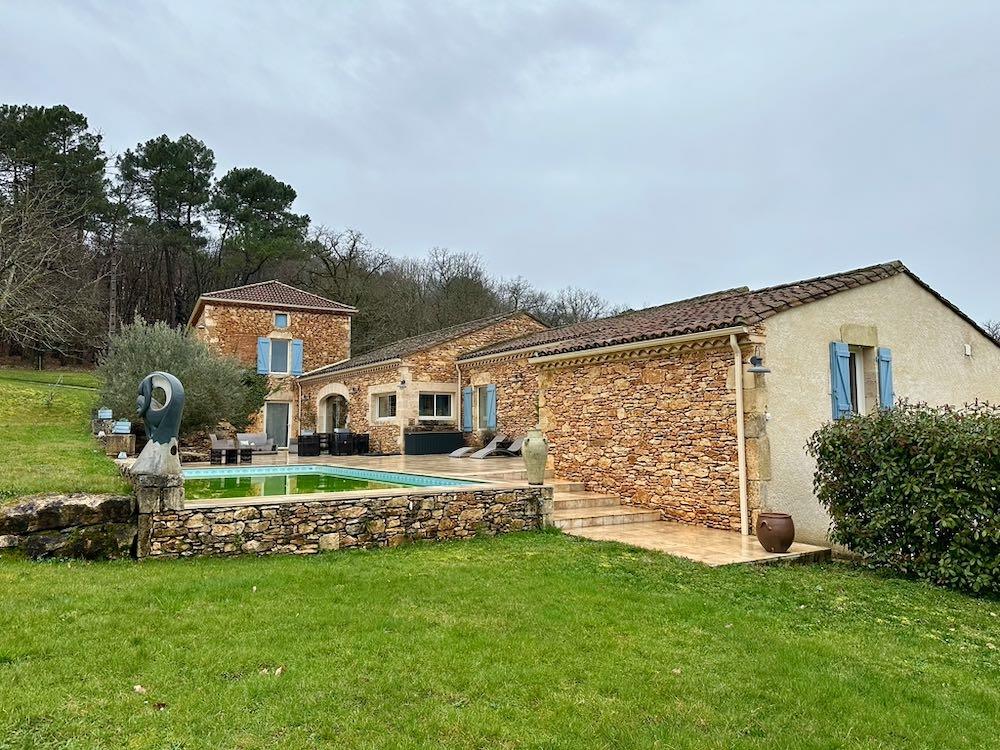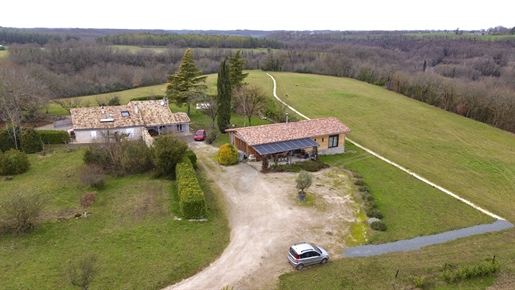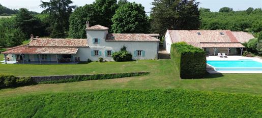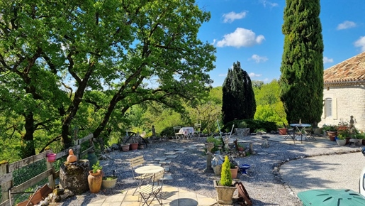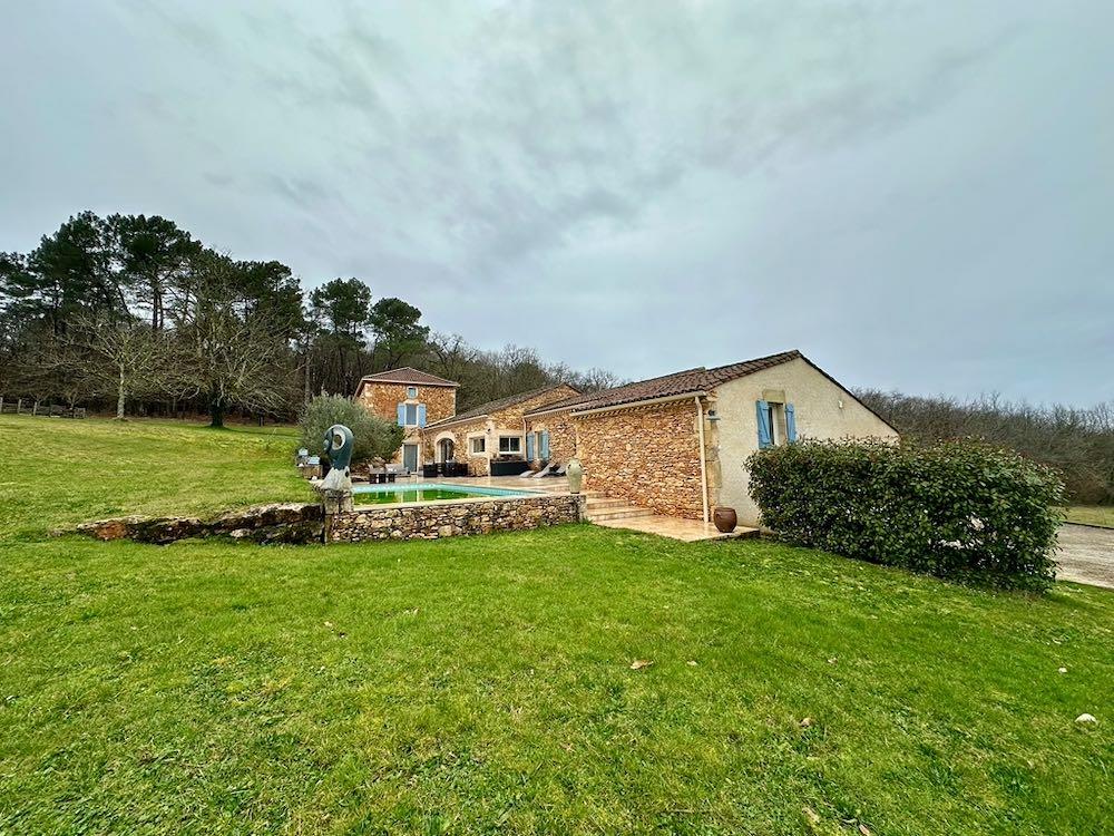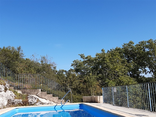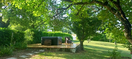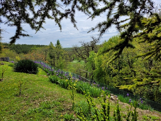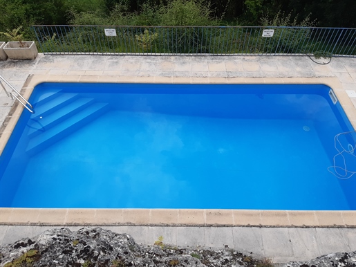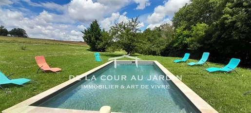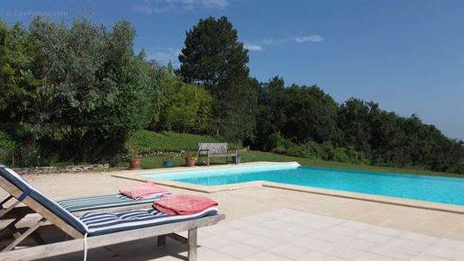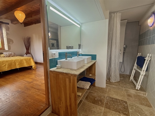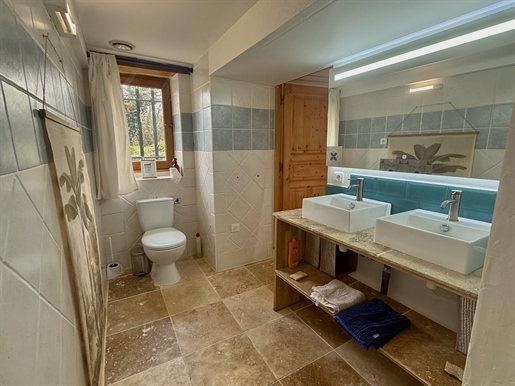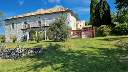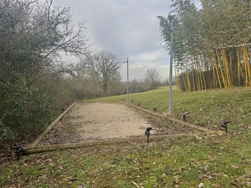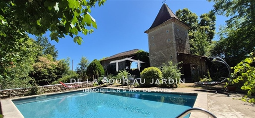 Elle se compose d'une grande maison avec pigeonnier, d’une grange aménagée en deux gites, pour une surface habitable totale de plus de 370 m2. Une piscine à débordement, plusieurs terrasses, couvertes ou non et quelques dépendances bien utiles, le tout s'implante sur un parc soigné et très joliment arboré de plus de 8000 m2.