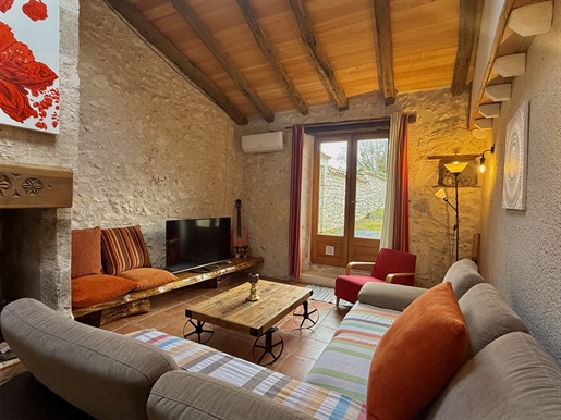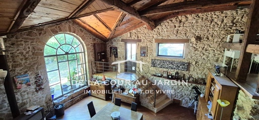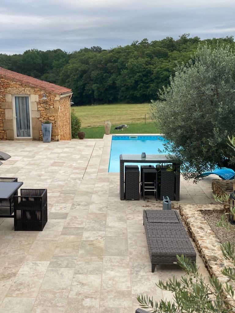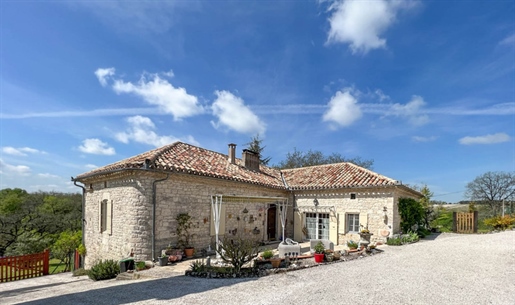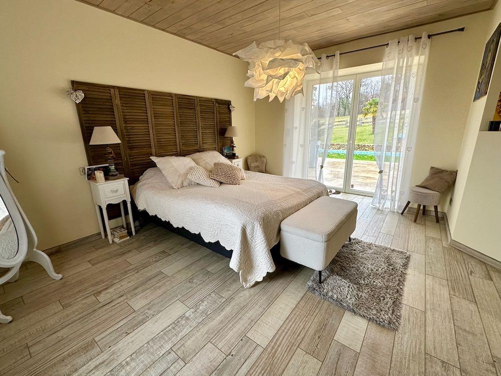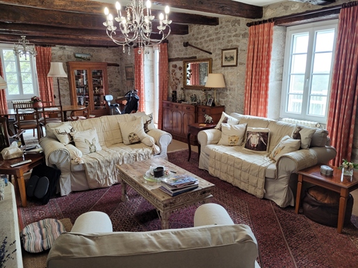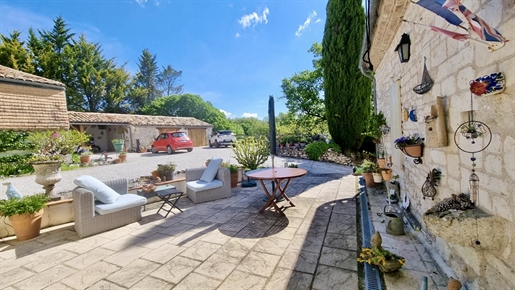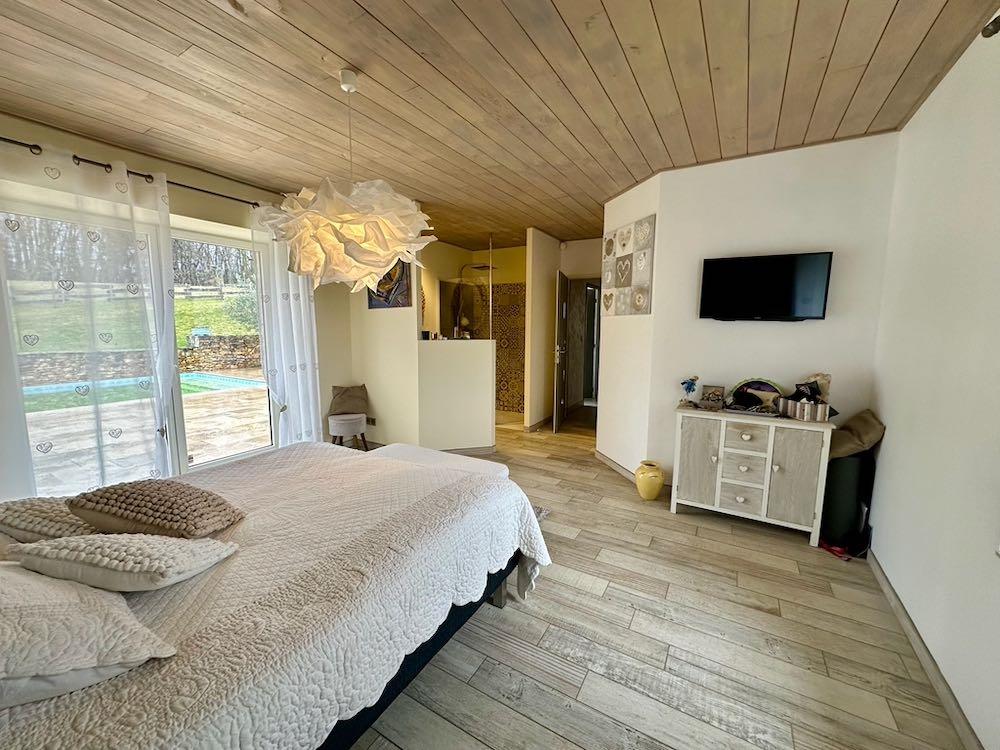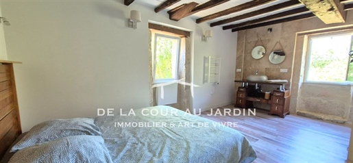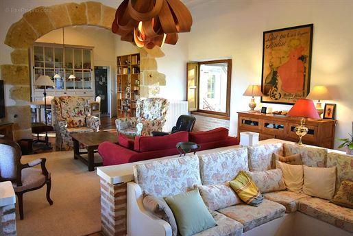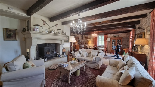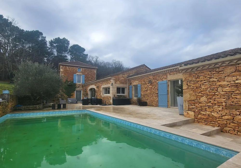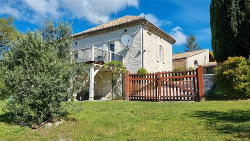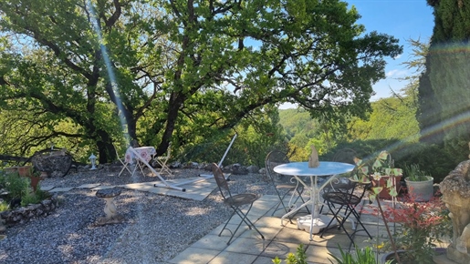 Elle se compose d'une grande maison avec pigeonnier, d’une grange aménagée en deux gites, pour une surface habitable totale de plus de 370 m2. Une piscine à débordement, plusieurs terrasses, couvertes ou non et quelques dépendances bien utiles, le tout s'implante sur un parc soigné et très joliment arboré de plus de 8000 m2.