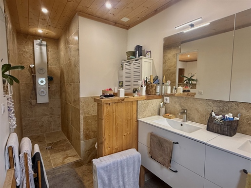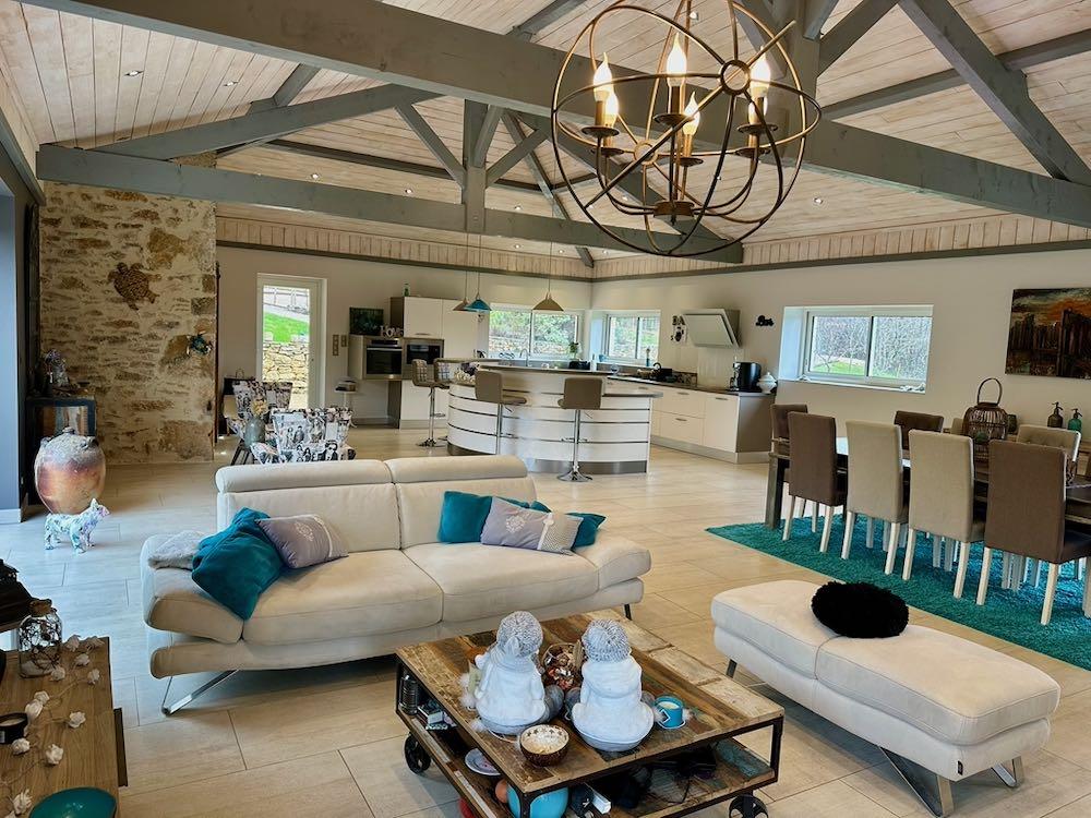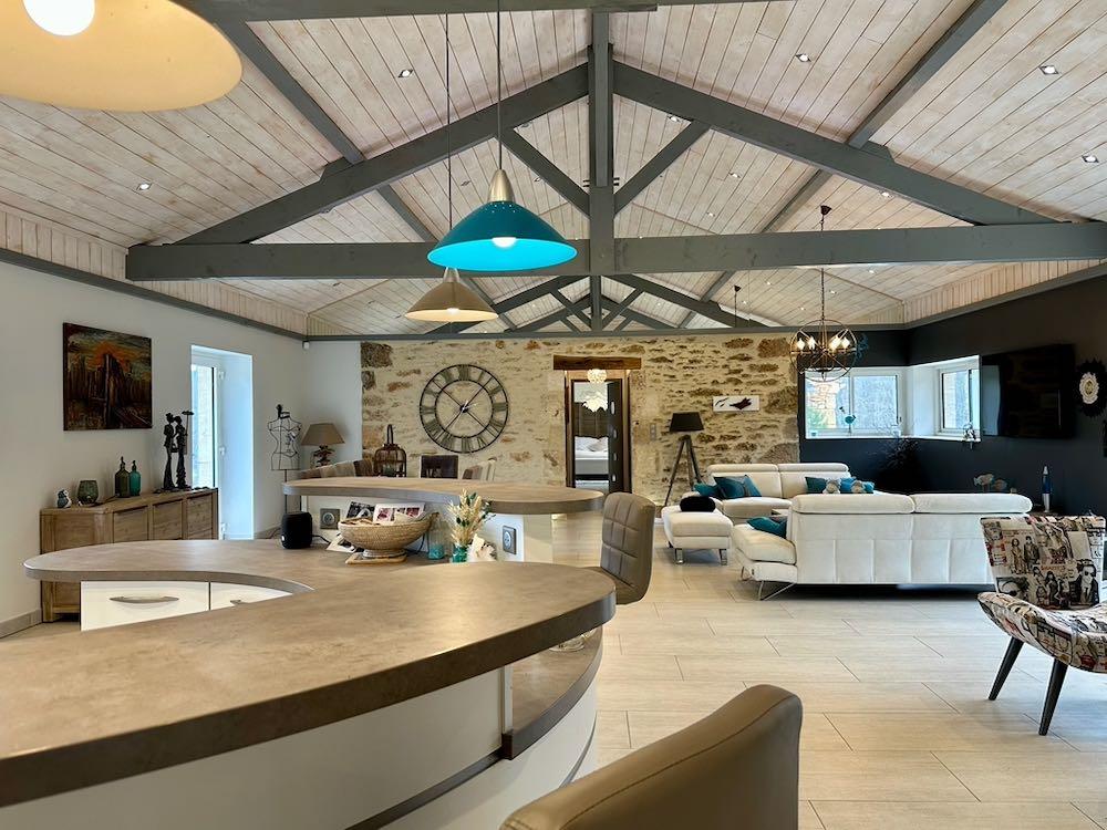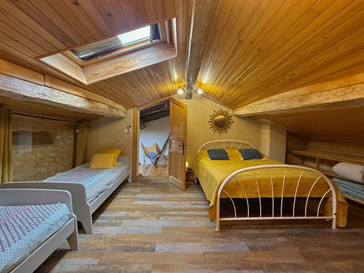 La grange : rénovée en deux gites qui peuvent êtres communicants et qui proposent chacun un espace ouvert séjour/cuisine, une salle d'eau et une chambre en mezzanine. Cependant, moyennant de légers aménagements, 2 chambres supplémentaires pourraient êtres aménagées dans deux pièces annexes, proposant ainsi une surface de 92m2 pour l'un et 70 m2 pour l'autre et 2 chambres de chaque côté.