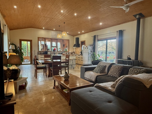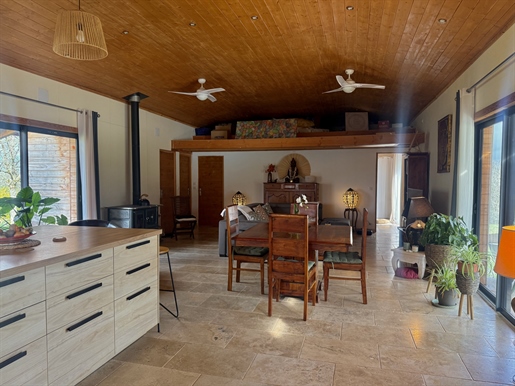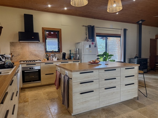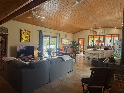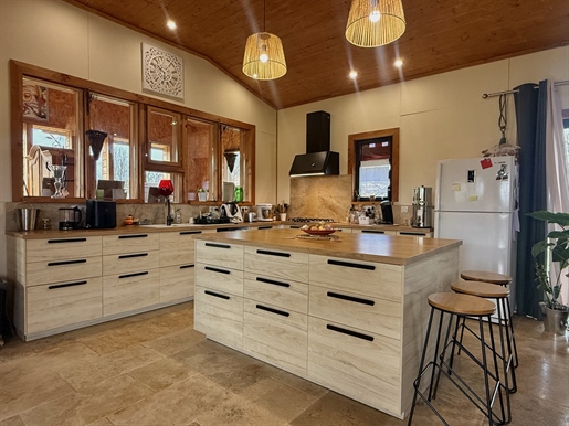 La maison principale, de plus de 210 m2 comprends 5 chambres dont 3 de pleins pieds. Une cuisine spacieuse et équipée qui donne accès à la terrasse arrière couverte, un salon/séjour ouvert d'où la vue est splendide ! Deux salles de bain dont une au rez-de-chaussée et une à l'étage.