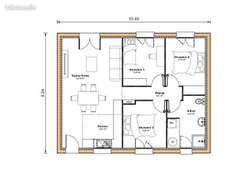 Séjour/cuisine : 30,49 m2