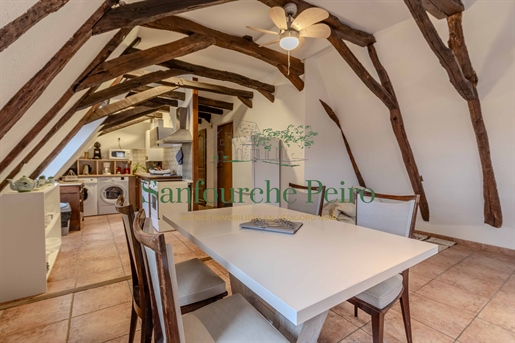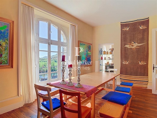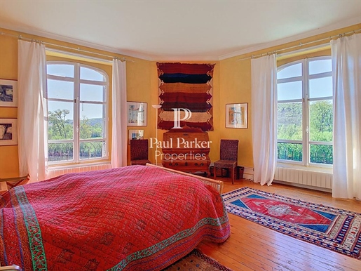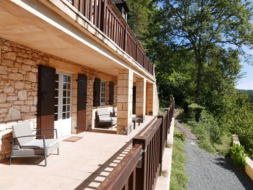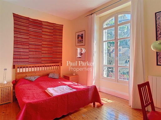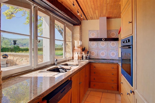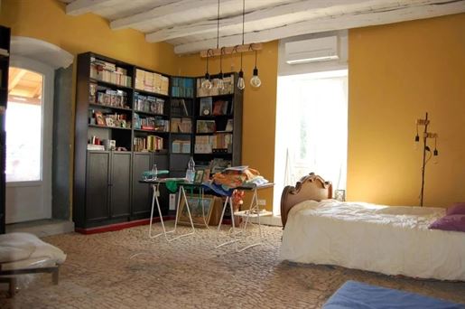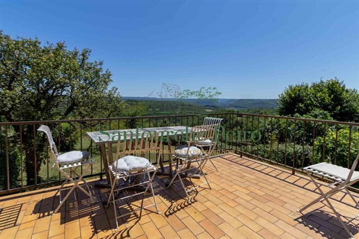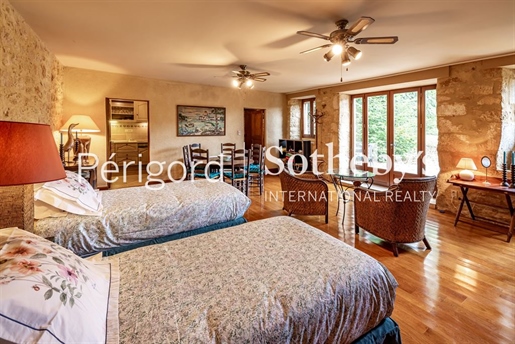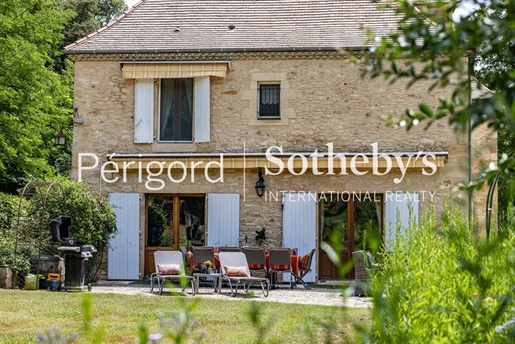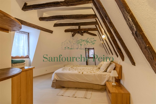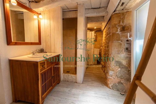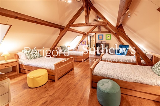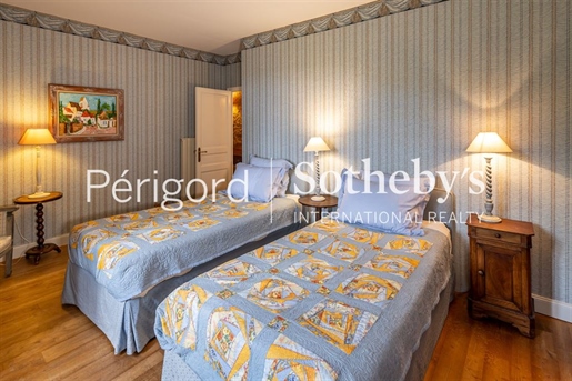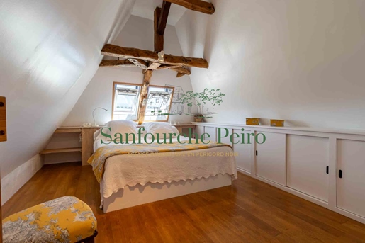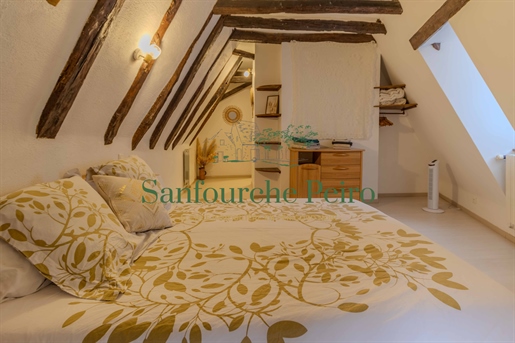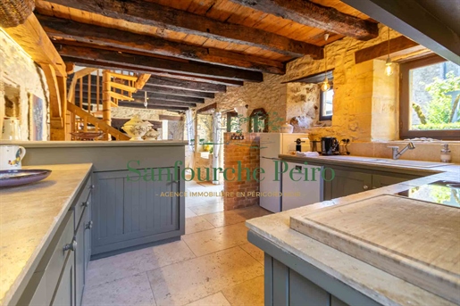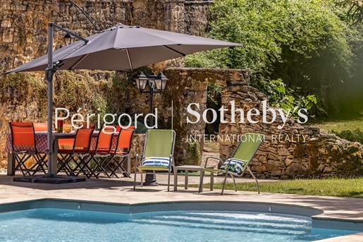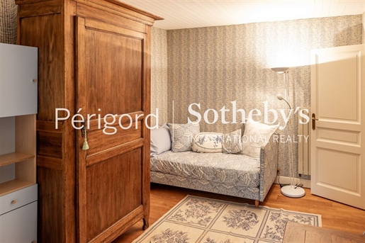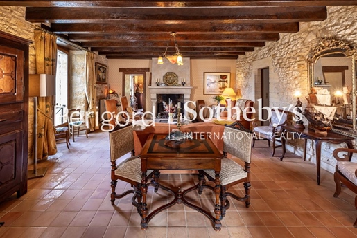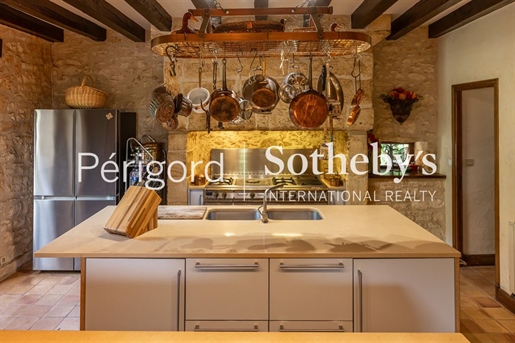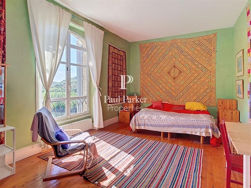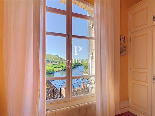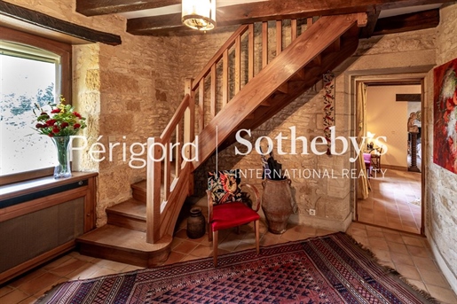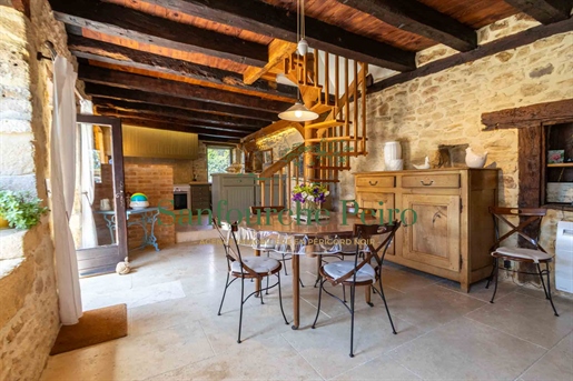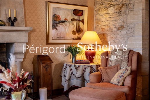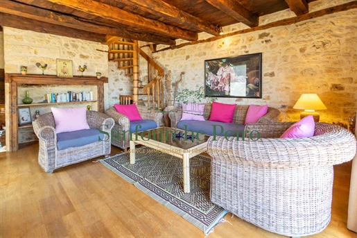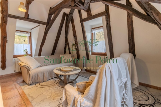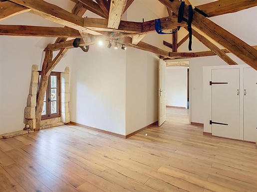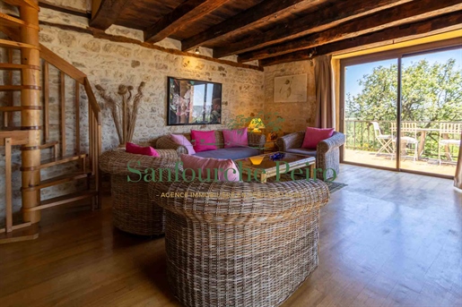 Une maison très intéressante avec une disposition unique, une vue magnifique et divers éléments authentiques qui évoquent le passé : plafonds à poutres apparentes, murs en pierre de calcaire ocre, cheminées imposantes, sol en pisé, armoire murale, grande cave voûtée et le bolet dont la clé de voûte date de 1743. Pour les amateurs d'énigmes, une inscription rouge sur la galerie commençant par « Le 27 Juillet 1872... Monsieur Coudreau... » découvrant un texte en noir encore plus ancien, attend votre déchiffrage.... Réf. 989-Aq0297ha. Référence : 0986-Aq0297ha