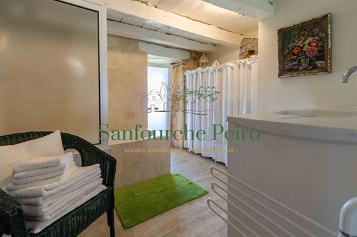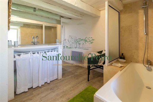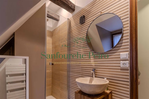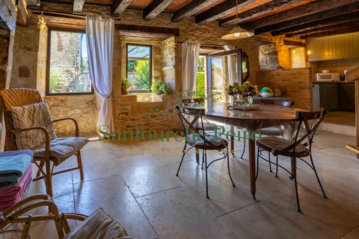 Une belle et pittoresque vieille maison de campagne, dont la partie la plus ancienne remonte au moins à 1743, comme l'indique la clé du cintre au-dessus de la porte d'entrée. Cette partie, située à gauche de la maison, comprend une pièce de vie d'environ 27 m2 avec un sol en pisé et une grande cheminée (désormais hors service) au premier étage, surmontant un grand espace voûté autrefois dédié à l'activité agricole (grande cave d'environ 25 m2) avec un sol en terre battue. Accès à la pièce de vie se faisait et se fait encore par l'escalier en pierre extérieur montant vers une caractéristique galerie couverte à l'étage (bolet). Sous le bolet se trouve l'entrée du grand espace de travail (cave voûtée d'environ 24,50 m²), précédée par une petite cave d'environ 5,50 m² directement sous le bolet.