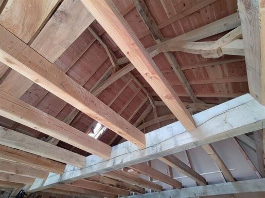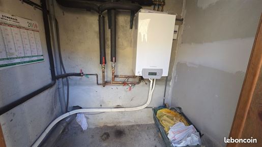 Additional spaces include a laundry room with independent access, a 53 m2 cellar, and a 63 m2 workshop/boiler room with a 6-ton pellet silo. Recent terraces facing South and East (5 years old) complete the picture.