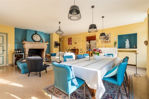 Au rez-de-chaussée, la vaste salle d’accueil impressionne avec sa cheminée monumentale en pierre de Bourgogne, son salon aux plafonds à la française, sa cuisine équipée rénovée les deux chambres spacieuses et recouvertes de parquet, jouxtent une salle de bain ainsi que des rangements et un dressing sur mesure.