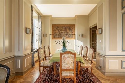 Au premier étage, le superbe appartement retient tout ce qu’on peut attendre d’une vie de château : de style Louis Xiii, il comprend un séjour de 75 m2 avec cheminée ancienne et trumeau doré, un parquet en noyer signé des meilleurs ouvriers de France, une cuisine récente, trois chambres à coucher et une salle de bain (avec baignoire et douche).