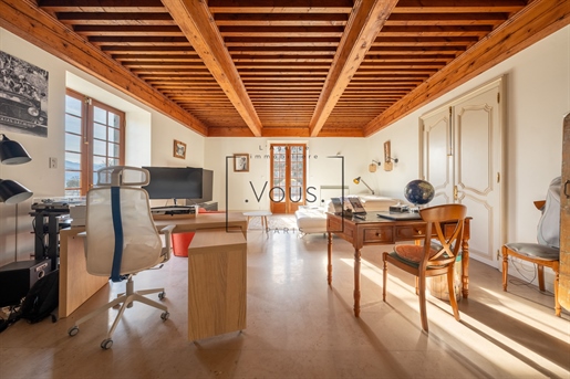 Enfin, les dépendances ne manquent pas de potentiel : la première est dédiée à l’évènementiel (environ 240 m2 entièrement rénovés, idéale pour réceptions, activités sportives ou bien-être) la deuxième à l’équitation et au rangement (anciennes stalles, box pour chevaux, espaces de stockage sur environ 280 m2) la troisième est un ancien corps de ferme à rénover, offrant un potentiel remarquable de 400 m2 au sol et équipé de 36 panneaux photovoltaïques installés en 2024 la quatrième est un petit pavillon de 15 m2, situé dans la cour intérieure et qui abrite un jacuzzi 5 places dernière génération avec musique intégrée, et vue sur les cimes enneigées.