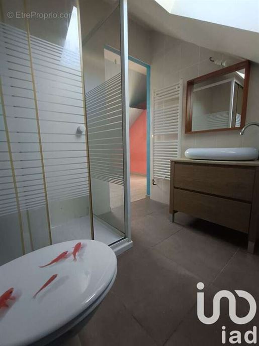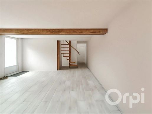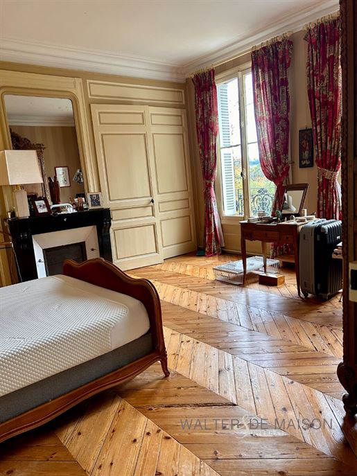 L'escalier en fer forgé, éclairé par une grande fenêtre, dessert à mi-hauteur des toilettes invités eux-mêmes éclairés avec une lucarne. À l'étage, un large palier distribue trois chambres aux volumes équilibrés, dont certaines sont munies de cheminées. Une salle d'eau/douche attenante à une chambre, une Salle de bain, un cabinet de toilette et de larges penderies harmonieusement réparties, contribuent à la convivialité de l'espace familial.