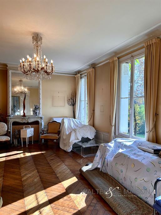 L'accès principal se fait par un perron, aujourd'hui à l'arrière de la demeure, chapeautée d'une marquise. Derrière la porte d'entrée en bois, vitrée et protégée par de fines ferronneries, un vaste vestibule, au sol couvert de carreaux anciens en terre cuite distribue les espaces du rez-de-chaussée. À gauche se présente un salon lumineux aux amples proportions. Il a conservé ses éléments de décor anciens : parquets en point de Hongrie, soubassements moulurés, cheminées en marbre, trumeau et grandes fenêtres qui donnent sur le jardin. À droite, une salle à manger communique avec une vaste cuisine, laquelle s'ouvre sur une petite terrasse (et une arrière-cuisine). Celle-Ci procure un prolongement vers l'extérieur qui pourrait être optimisé. Un dégagement et l'escalier principal s'ajoutent au niveau.