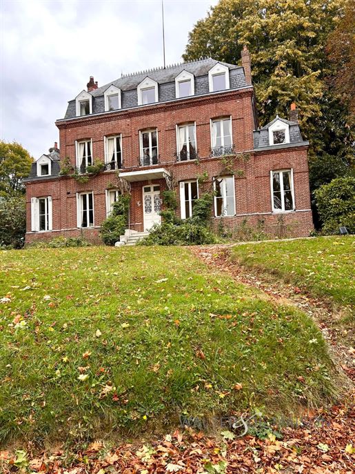 A 120 km de Paris, ou 20 km de Rouen, cette belle demeure normande de la fin du XIXè, construite en brique industrielle, réveillée par des fenêtres et volets peints en blanc, présente tous les éléments caractéristiques de l'architecture bourgeoise.