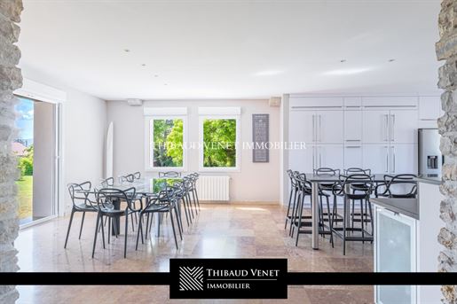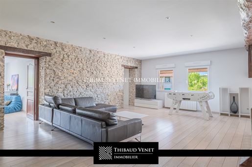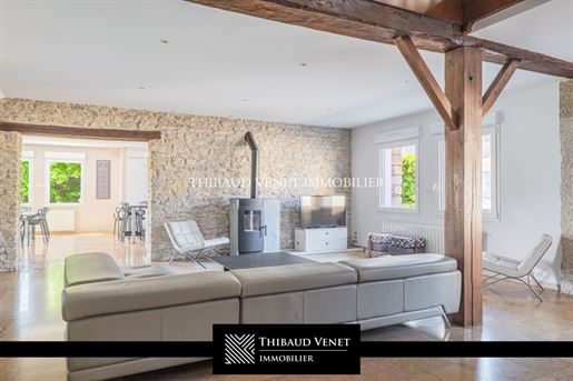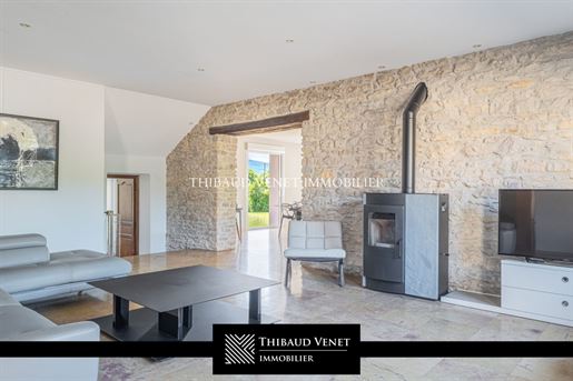 Propriété 10 pièces 449 m² Exclusivité – Propriété De Caractère – 448 M² Habitables Hors Dépendance – Parc De 4 300 M². À Seulement 10 Km De Lagnieu Visites uniquement sur justificatif de financement Le groupe d'agences Thibaud Venet Immobilier vous présente en exclusivité cette propriété de caractère, ancien corps de ferme entièrement réhabilité avec soin par des artisans, située dans un environnement résidentiel calme, à seulement 45 minutes de Lyon et 1h30 de Genève. L'ensemble se distingue par ses volumes, la noblesse de ses matériaux et la qualité de sa rénovation. Surface habitable (hors dépendance) : 448 m²Terrain : 4 300 m² (constructible) La maison principale développe des espaces généreux dans un cadre élégant et intemporel. Dès l'entrée, un vaste hall mène à un espace de vie de plus de 110 m², baigné de lumière naturelle. Le rez-de-chaussée comprend un salon avec poêle mixte (granulés/bois), une salle à manger accueillante, ainsi qu'une cuisine ouverte conçue sur-mesure avec des finitions haut de gamme : plans de travail en granite, piano de cuisson, rangements et électroménager encastré de qualité. Ce niveau intègre également un espace bien-être avec sauna, salle d'eau, toilettes, et un accès direct à une terrasse tournée vers le jardin. Une buanderie spacieuse complète cet ensemble. Le premier étage s'articule autour d'une mezzanine distribuant une suite parentale avec salle d'eau privative, toilettes et dressing, deux autres chambres confortables, une salle de bains indépendante et des toilettes séparés. L'ensemble bénéficie de menuiseries soignées. Le deuxième étage, aménagé sous combles, propose une chambre supplémentaire, une salle d'eau avec toilettes, ainsi qu'un espace polyvalent pouvant servir de bureau, salle de jeux ou de détente, selon les besoins. Attenante à la maison principale, la seconde habitation dispose d'un accès indépendant mais peut également être reliée directement depuis l'intérieur, offrant ainsi plusieurs possibilités d'usage. Elle se compose d'un séjour, d'une cuisine, de deux chambres, d'une salle de bains et de toilettes. Bien qu'elle nécessite un rafraîchissement complet, sa configuration permet d'envisager un logement annexe pour des invités, un espace indépendant pour un projet professionnel, ou une extension de la maison principale. Le parc de 4 300 m² est entièrement clos et paysagé. Il se compose d'allées aménagées, d'es beaux arbres, de haies végétales et d'un espace de détente avec piscine de 10 m x 5 m. Une terrasse couverte permet de profiter pleinement du jardin dans un cadre sans vis-à-vis, parfaitement préservé. Les équipements techniques sont à la hauteur de l'ensemble : chauffage central au fioul, climatisation réversible, poêle mixte bois/granulés, ventilation, menuiseries en double vitrage, volets roulants électriques, interphone visiophone, portail motorisé, éclairage extérieur complet. L'assainissement est collectif. Grâce à une rénovation complète réalisée par des professionnels qualifiés, la propriété bénéficie d'une bonne performance énergétique, attestée par un Dpe classé en C, un classement particulièrement favorable pour une maison en pierre. Taxe foncière : 4829 € ---------------------------------------------------- Nous : 09 I 72 I 45 I 60 I 82 ---------------------------------------------------- Découvrez Toutes Nos Propriétés [Url masquée pour votre sécurité] --------------------... Surface : 449 m² Date de réalisation du diagnostic énergétique : Consommation énergie primaire : 168 kWh/m²/an Consommation énergie finale : 0.00 kWh/m²/an Montant estimé des dépenses annuelles d'énergie pour un usage standard : entre 7 477 € et 10 117 € sur les années 2021, 2022 et 2023 (abonnements compris).Demander plus d'informations