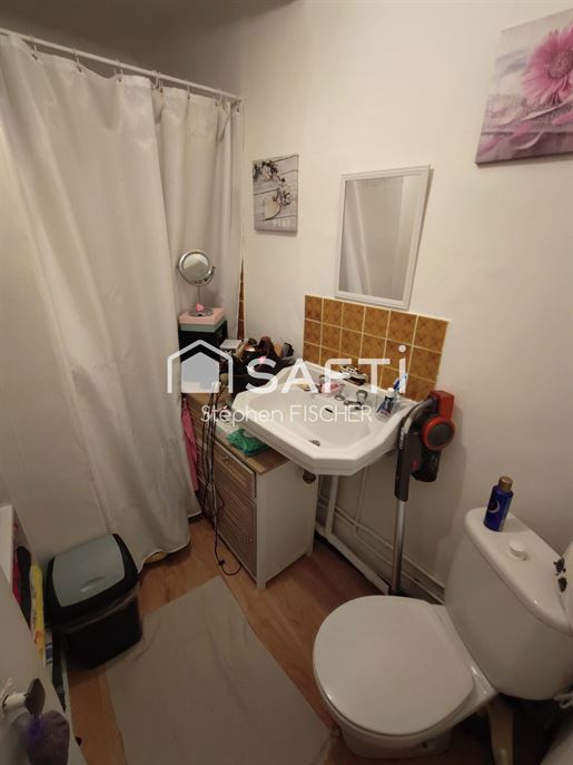 Une chambre ou bureau avec salle de bains et WC,