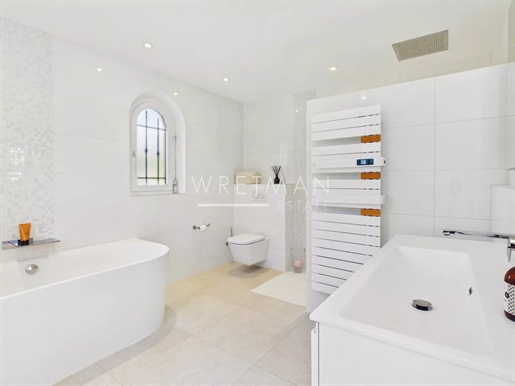 La villa bénéficie de nombreuses prestations de qualité : double vitrage, chauffage central au gaz, climatisation réversible, cheminée, portail électrique avec visiophone, ferronneries, ainsi qu'un système d'arrosage et d'éclairage automatiques.