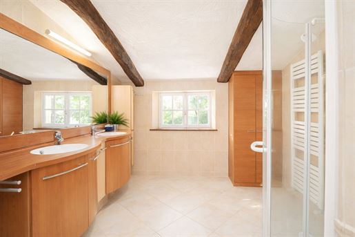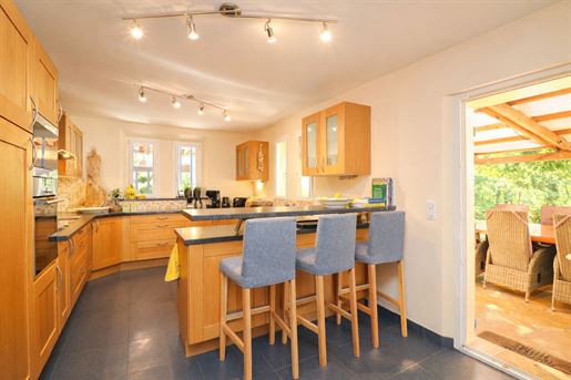 - au Rdc : hall d'entrée, 2 Wc indépendants, la suite parentale de 40m2 climatisée avec dressing + salle de bains/douches, une deuxième chambre, la cuisine indépendante équipée, un vaste séjour avec sa cheminée insert, une salle à manger spacieuse et sa véranda généreuse.