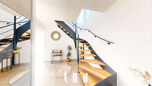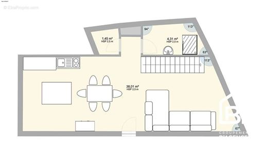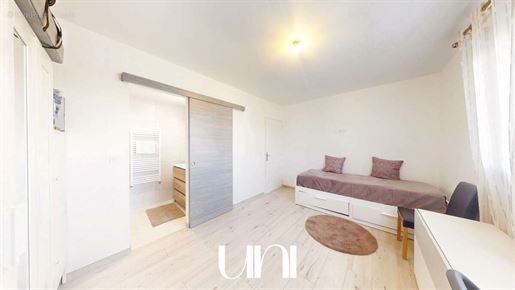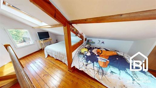 La maison est composée d'un grand séjour avec cuisine ouverte au rdc, avec chambre et salle de douche avec Wc. Au 2ème étage, 2 chambres ainsi qu'une salle de douche avec Wc. Nombreux rangements. Cave et parking.