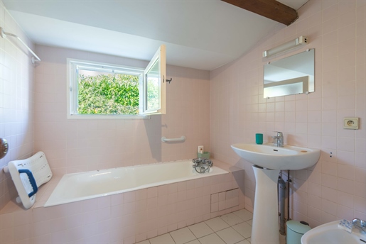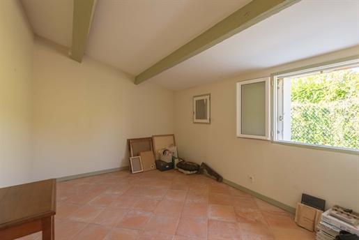 Depuis ce cellier, nous accédons à une pièce supplémentaire d’environ 18 m2. Aujourd’Hui aménagée en salle de jeux, elle peut devenir une chambre généreuse, un espace dédié à un hobby, un atelier, une salle de sport ou un lieu parfaitement adapté à une profession libérale. Une vraie pièce polyvalente, rare et précieuse.