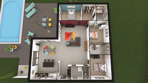 Depuis l’espace principal, découvrons maintenant les espaces nuit. Sur la première aile, la suite parentale offre une chambre lumineuse avec baies vitrées ouvrant sur la terrasse, une salle d’eau et un dressing. En traversant la pièce de vie, une seconde aile distribue une chambre, une salle d’eau indépendante, ainsi qu’une seconde suite avec sa salle d’eau privative.