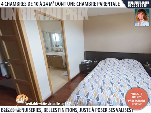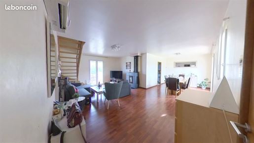 La maison principale de 145 m2 offre au rez-de-chaussée un salon chaleureux avec poêle à bois, une cuisine ouverte sur salle à manger, un bureau, un Wc, ainsi qu'une chambre parentale avec salle de bains attenante. Le niveau inférieur abrite trois chambres supplémentaires et une salle de bains familiale. Double vitrage sur l'ensemble de la maison.