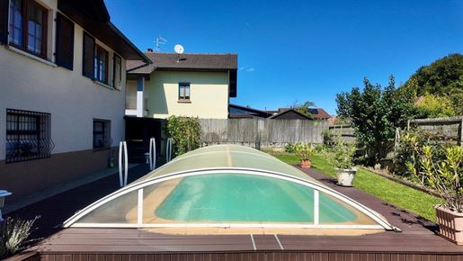 Diese elegante, charmante Familienvilla befindet sich in einer ruhigen und sonnigen Lage. Großes Wohn- und Esszimmer mit Kamin, offene Küche, 4 große Schlafzimmer, 3 Bäder, schöner Dachboden, der noch ausgebaut werden muss. 2 Terrasse mit 3 elektrischen Markisen. Großer eingezäunter Garten mit Bäumen und Rasen, auch für Gemüse und Obst geeignet. Garage für 2 Autos. Sehr angenehmer Ort mit einer natürlichen Umgebung in der Nähe aller Infrastrukturen.