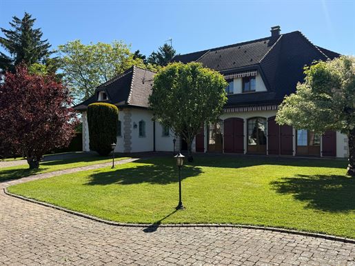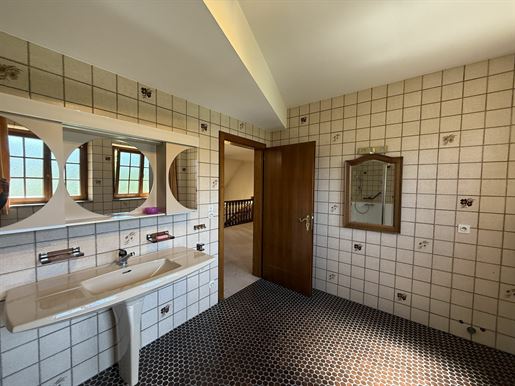 Sect. Altkirch / Carspach à env. 20 - 35 min A 36, Mulhouse, Airport, A 35, Bâle, Palmrain/D: Très belle maison de charme & de caractère située dans un écrin de verdure env. 240 m² / grand double séjour env. 50 m² + cheminée, cuisine + coin repas / 4 chambres, 3 salles d'eau Xxl, 3 Wc, buanderie. Espace combles à aménager. Situation très au calme et ensoleillée!