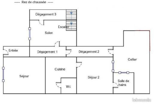 - Combles aménagés (63 m2 environ au sol, 38 m2 Carrez) : deux chambres supplémentaires, un Wc séparé avec lave-mains, un débarras et une grande pièce ouverte facilement refermable.