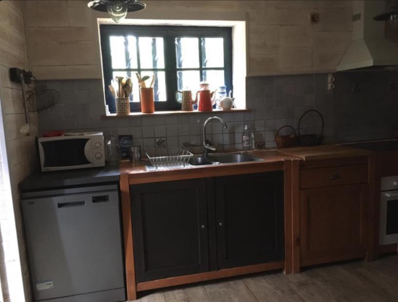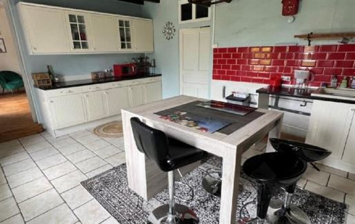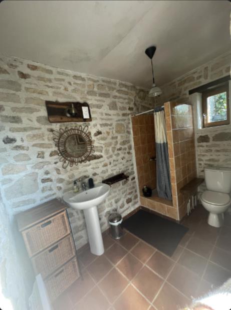 La cuisine, récemment installée et réalisée sur mesure, est superbement équipée avec des meubles gris en bois massif, fabriqués artisanalement. Elle s'organise autour d'une prestigieuse cuisinière Lacanche à double four, complétée par des plans de travail en granite et en bois, un vaste îlot central et un impressionnant cellier. Au-Delà de la cuisine se trouve une grande pièce, actuellement utilisée comme bureau, qui abritait autrefois la mercerie du village. De l'autre côté du hall d'entrée se situe une magnifique pièce de réception, intégrant un espace salle à manger à l'une de ses extrémités, baignée de lumière naturelle et idéale pour recevoir. Attenante au salon, avec des portes-fenêtres ouvrant directement sur la cour, se trouve une seconde cuisine aménagée, ainsi qu'une pièce supplémentaire à l'étage. La maison dispose également d'une cave voûtée ancienne, offrant un excellent espace de stockage ou un potentiel espace de dégustation de vin.