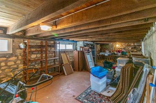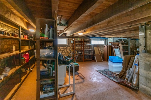 Le sous-sol offre de nombreux espaces annexes très appréciables : un grand garage de 29 m2, une vaste pièce de stockage ou atelier de 37 m2, une réserve équipée d’étagères, un Wc et une cuisine d’été avec accès direct au jardin. Ces volumes permettent de multiples usages selon les besoins : stationnement, bricolage, stockage, loisirs ou aménagements complémentaires.