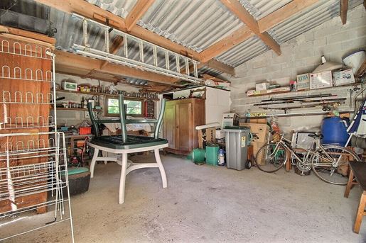 À l'extérieur, la maison bénéficie d'un grand jardin plat entourant la propriété, idéal pour profiter des beaux jours. Vous y trouverez également un abri de jardin ainsi que deux garages, apportant un réel confort de stationnement et de rangement.