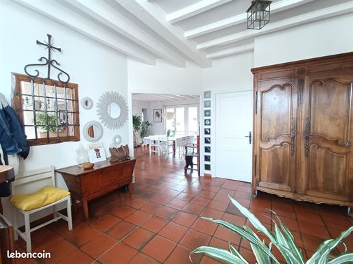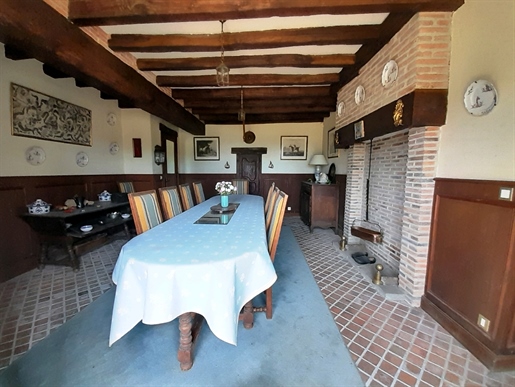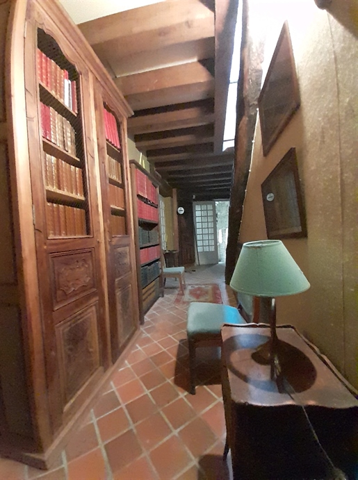 – Une salle à manger de 45,57 m². Cheminée monumentale en pierre du XVe. Tomettes au sol. Accès à une terrasse plein sud puis au jardin à la française ;
