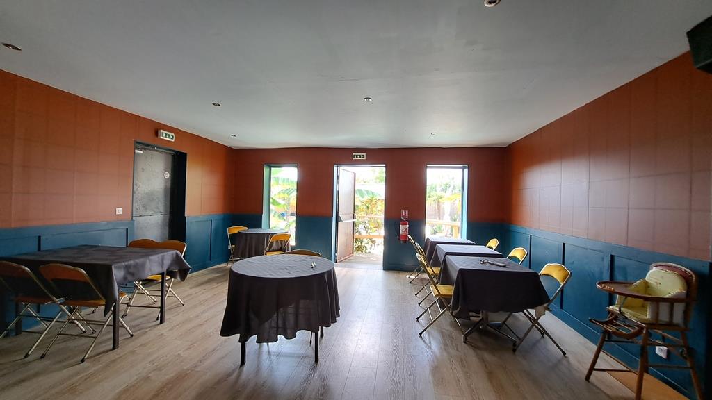 – Une superbe salle de réception de 86,33 m² avec cheminée monumentale en pierre du XVIe siècle. Sonorisation complète (Pioneer dj) et éclairage. A l’extrémité, un bar tout équipé : évier, comptoir, machine à glaçons, frigo, lave-vaisselle. Un wc de 1,41 m² attenant. Au-Dessus un poste de Dj dominant la salle. Classée Erp 5e catégorie. Licence Iv ;