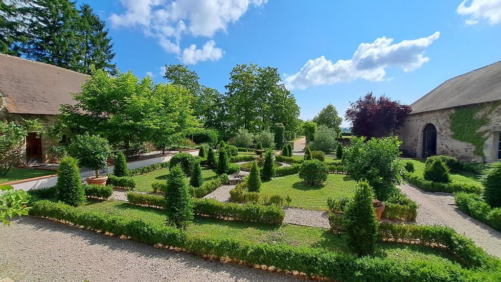 Dans la cour d’honneur, un jardin à la française a été créé en 2020, composé de buis et d’ifs. Une fontaine avec bassin en pierre trône au centre. Deux puits, avec de l’eau, sont présents.