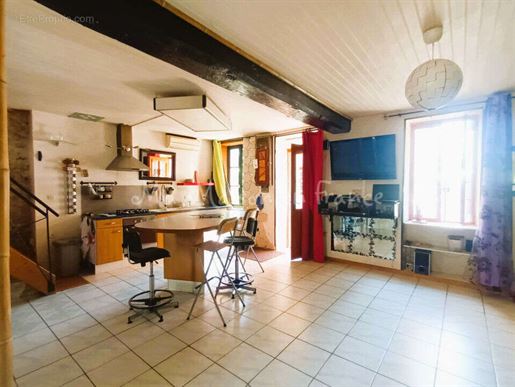 – Une cuisine équipée de 27,11 m². Cheminée en pierre du XVe. Tomettes au sol ;
