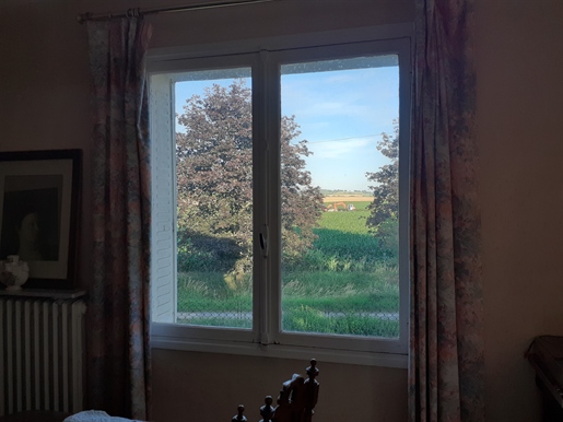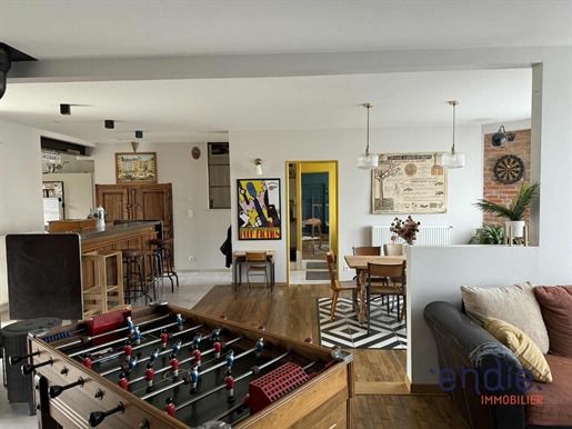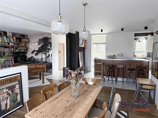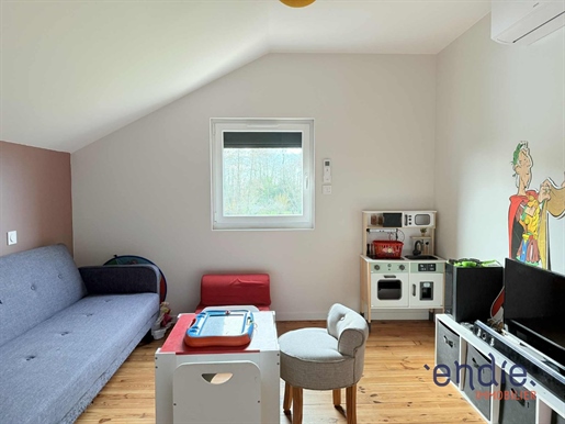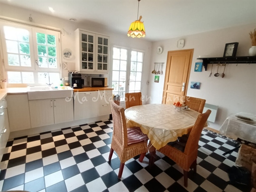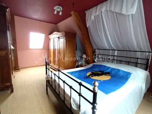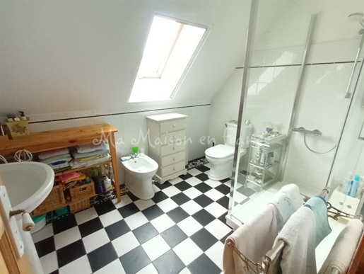 La maison communique, par l'intermédiaire d'une lingère-chaufferie, avec une longère entièrement rénovée comprenant une grande cuisine, une magnifique salle de réception de 50 m2, toilettes, et un logement indépendant à l’étage avec salle d’eau-wc et espace grenier.