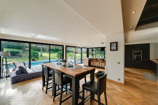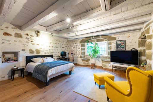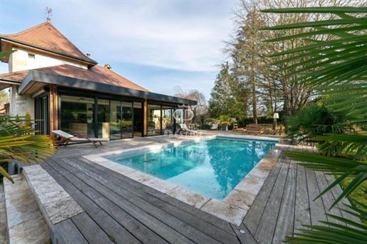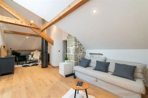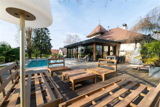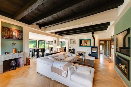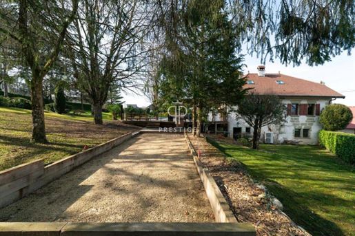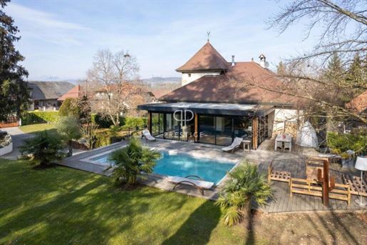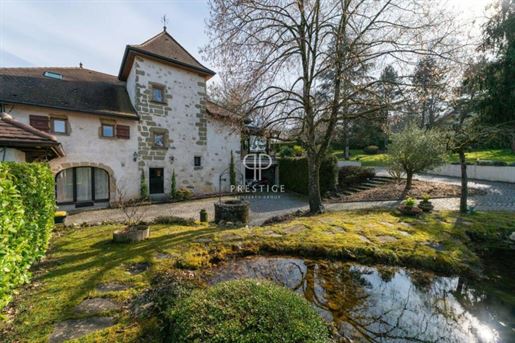 Située dans la commune de Chavanod, à seulement quelques minutes d'Annecy, cette propriété rare allie à la perfection le charme de l'ancien et le confort moderne. Un cadre de vie privilégié, offrant à la fois tranquillité et proximité immédiate des commerces, écoles et transports. Vous trouverez sur place une boucherie, une boulangerie, une école primaire, et un accès facile aux principales lignes de bus et axes routiers. Rénovée par un architecte, cette ferme de 475 m² environ vous charmera par son atmosphère unique, son architecture soignée et ses volumes généreux. Elle s'élève sur trois niveaux, composée d'une partie habitation et d'une partie professionnelle. Partie habitation : Le rez-de-chaussée comprend une vaste entrée, un séjour lumineux, une cuisine équipée et un atelier de bricolage, qui pourrait facilement être transformé en chambre. Une terrasse couverte, une chaufferie, deux caves et des Wc indépendants. Au premier étage, vous trouverez une suite parentale avec balcon, dressing et salle de bains deux chambres supplémentaires, ainsi qu'une mezzanine avec bibliothèque accédant à un balcon/terrasse et des Wc indépendants. Au deuxième étage, deux chambres, une salle d'eau, un espace bureau et un grenier aménageable, offrant encore un potentiel d'aménagement supplémentaire et des Wc indépendants. Partie professionnelle : Cette ferme dispose également d'une partie aménagée pour un usage professionnel, actuellement utilisé en bureaux, comprenant un accueil, deux open-spaces et une salle de réunion. Ce lieu polyvalent peut s'adapter à vos besoins, qu'il s'agisse d'une activité professionnelle ou d'un aménagement personnel. Extérieurs : Un parking pour 10 véhicules, un abri de jardin, un bassin et une terrasse couverte pour vos moments de détente. Il serait possible de créer un espace piscine si vous le désirez. Le tout sur un terrain arboré de plus de 2 700 m². Cette propriété d'exception, alliant confort, modernité et authenticité, est un véritable coup de coeur. Elle se distingue non seulement par sa rénovation de qualité, mais aussi par sa situation idéale à Chavanod, à quelques minutes d'Annecy. Pour plus d'informations ou pour organiser une visite, n'hésitez pas à nous .