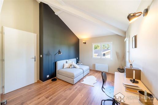 Imaginez-Vous vivre dans un véritable havre de paix, au coeur de la charmante commune frontalière de Chens-sur-Léman. Cette maison d'exception de 184 m², entretenue avec un soin irréprochable, vous invite à poser vos valises dans un cadre lumineux, calme et parfaitement orienté. Baignée de soleil grâce à son exposition idéale, elle offre des volumes intérieurs généreux qui sauront accueillir tous vos projets de vie.Nichée sur une parcelle plate et constructible de 1606 m², partiellement clôturée et magnifiquement arborée, cette propriété est une toile vierge pour vos rêves : un jardin verdoyant, un espace potager ainsi qu'une partie ou vos enfants pourront jouer en toute sécurité.Un rez-de-chaussée qui inspire le confort et la convivialitéDès que vous franchissez le seuil, vous êtes accueilli par une entrée spacieuse de 22 m², baignée de lumière, qui ouvre la voie à une maison pensée pour le bien-être.Un double salon-séjour, véritable coeur de la maison, où vous imaginerez déjà vos soirées en famille, vos réceptions entre amis ou vos moments de détente près d'une grande baie vitrée inondée de soleil.Une cuisine fermée fonctionnelle, prête à devenir le théâtre de vos exploits culinaires, avec assez d'espace pour partager des repas préparés avec ux chambres cosy, parfaites pour accueillir enfants, invités ou même un bureau inspirant.Une salle de bain, élégante et bien agencée, pour un quotidien fluide et agréable.Un étage pour des nuits paisibles et des projets ambitieuxÀ l'étage, découvrez quatre chambres spacieuses, toutes offrant plus de 16 m² d'espace pour créer des cocons personnalisés. L'une d'elles, d'environ 25 m², se distingue par son volume impressionnant : imaginez-y une suite parentale somptueuse avec dressing, un espace bien-être ou même un atelier créatif. Cette chambre dispose déjà d'une douche, avec la possibilité d'ajouter une salle de bain privative pour un confort absolu.Un sous-sol polyvalent pour tous vos besoinsLe sous-sol complet de 115 m² est un véritable trésor :Un garage double de 40 m², où vos véhicules et projets trouveront leur place.Une cave de 21 m², idéale pour conserver vos trésors ou aménager une cave à vin.Un atelier de 17 m², parfait pour les bricoleurs ou les passionnés de projets manuels.Une buanderie de 10 m² et un dégagement/cellier de 27 m², pour une organisation sans effort.Un extérieur pour vivre vos rêves en grandÀ l'extérieur, laissez-vous séduire par un terrain plat et arboré de 1606 m², un espace où tout devient possible : une piscine pour les étés ensoleillés, un coin barbecue pour des soirées mémorables, ou encore une extension pour accueillir vos futurs projets.Le potager ravira les amateurs de jardinage, un espace de stationnement pratique derrière la maison et le grand espace d'agrément vous offriront liberté et praticité. Ce jardin, entouré d'arbres majestueux, est une invitation à la sérénité et à la contemplation.Cette maison, entretenue avec passion, est bien plus qu'un bien immobilier : c'est un lieu où écrire les prochains chapitres de votre vie. Lumineuse, spacieuse et nichée dans un écrin de verdure, elle n'attend que vous pour prendre vie. Ne manquez pas cette opportunité unique à Chens-sur-Léman !Honoraires à la charge du vendeur. Classe énergie E, Classe climat B Montant estimé des dépenses annuelles d'énergie pour un usage standard : entre 2800.00 € e...