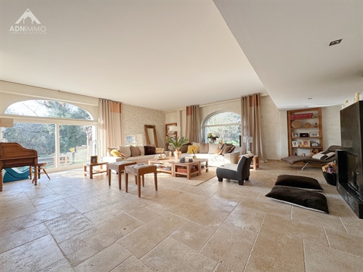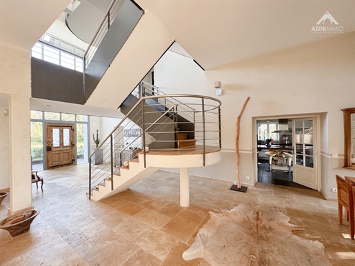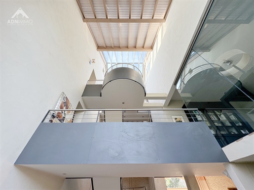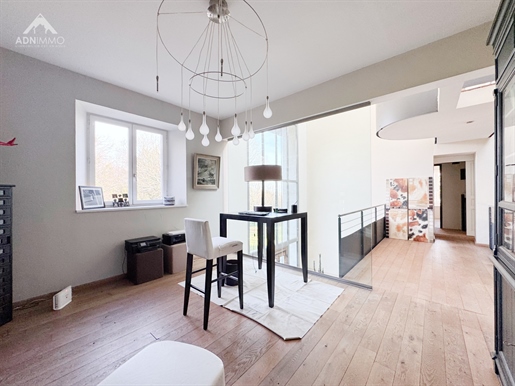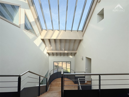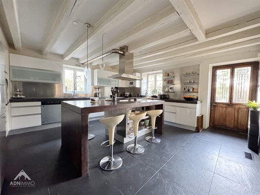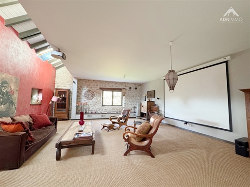 L'entrée s'ouvre sur un dégagement central qui dessert les différentes pièces du rez?de?chaussée, notamment un Wc indépendant et l'accès direct au sous-sol. Vous entrez ensuite dans une très grande pièce de vie traversante, lumineuse, avec une cheminée et une cuisine américaine aménagée et équipée, ouverte sur l'espace salon. Sur ce niveau se trouve également une chambre avec accès direct à l'extérieur, idéale pour un bureau ou une chambre d'amis.