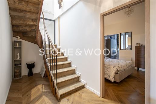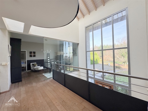 À l'étage, un palier dessert quatre chambres dont une suite parentale avec dressing et salle d'eau privative. Vous trouverez également une salle de bains avec double vasque et un second WC.